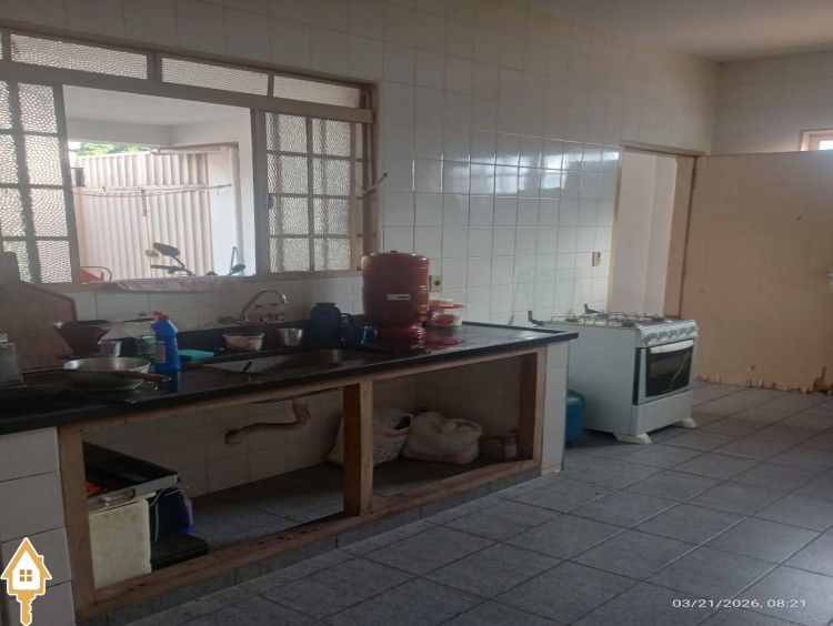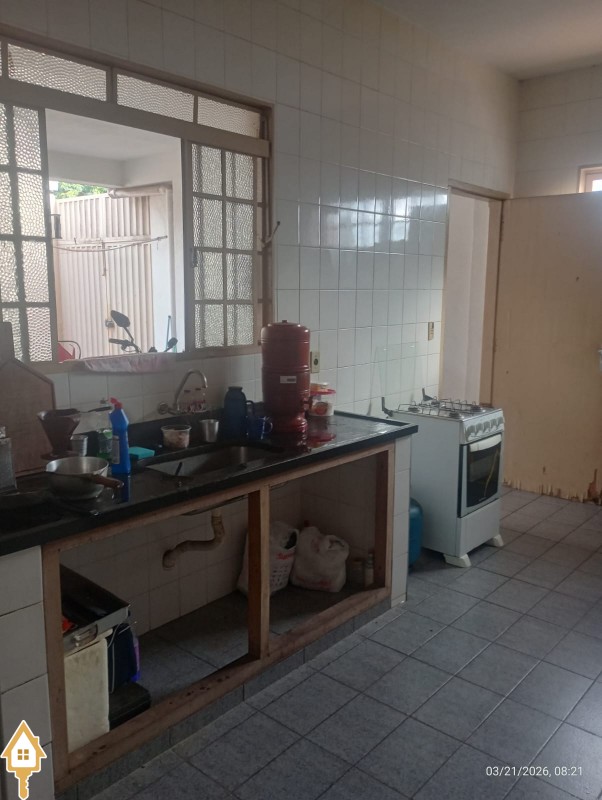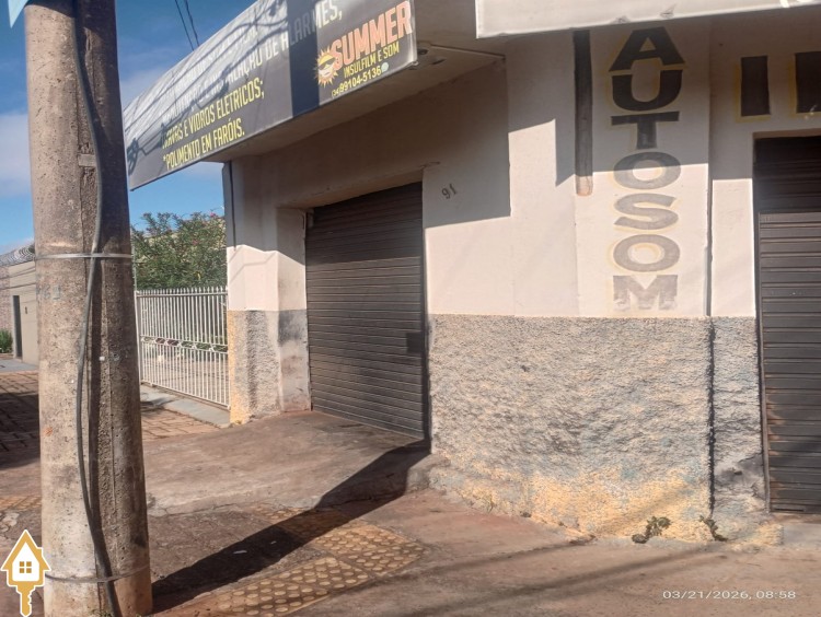 Casa de esquina composta por alpendre, sala, 04 quartos, 02 banheiros e 02 vagas de garagem, 01 cômodo comercial com banheiro.