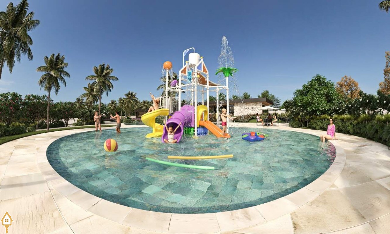 - Piscina adulto com deck molhado e piscina infantil com parque aquático