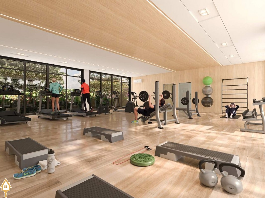 - Academia completa, sala de yoga, funcional e espaços fitness ao ar livre