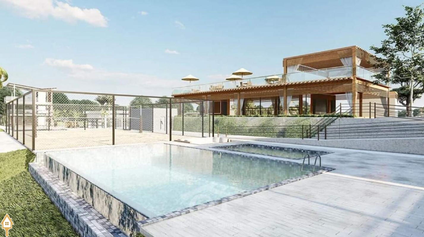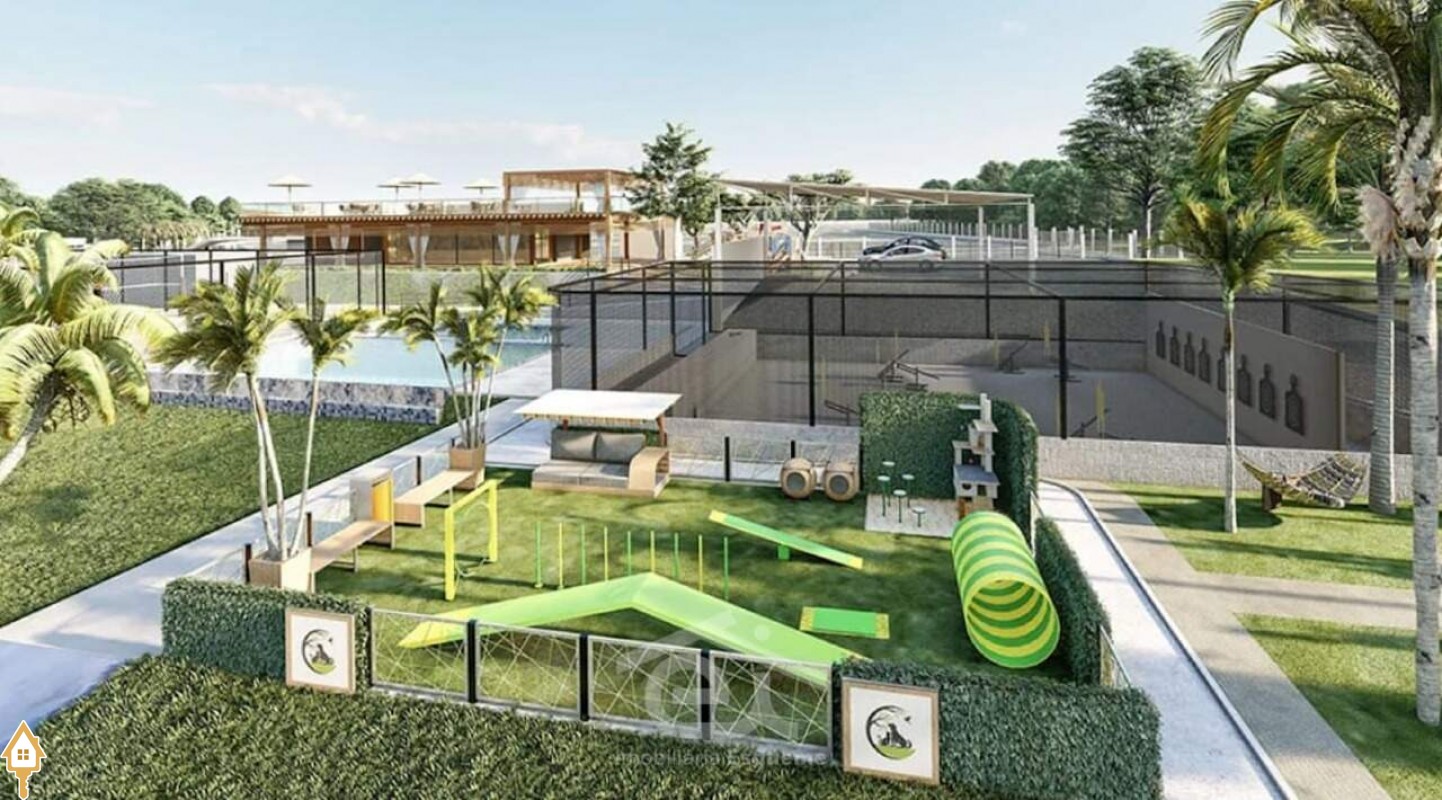 Área de lazer completa com academia, salão de festas, salão de jogos, praça de fogo, mini market, playground, quadras de beach tennis (adulto e infantil), quadra de vôlei de areia, balanço, mini golf, mirante e paisagismo.
