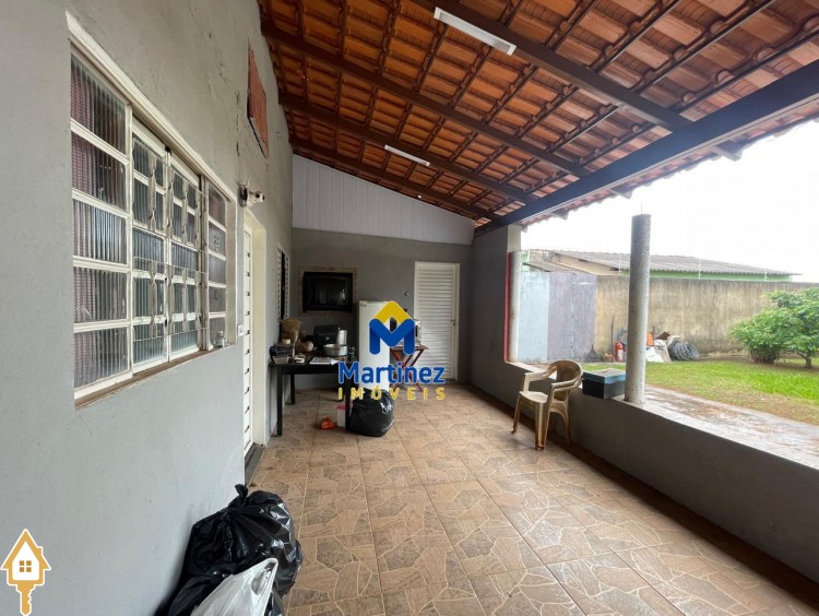 2 Quartos (sendo 1 suíte) Sala Cozinha Banheiro social Área de serviço coberta Varanda Quintal gramado Garagem para 2 carros