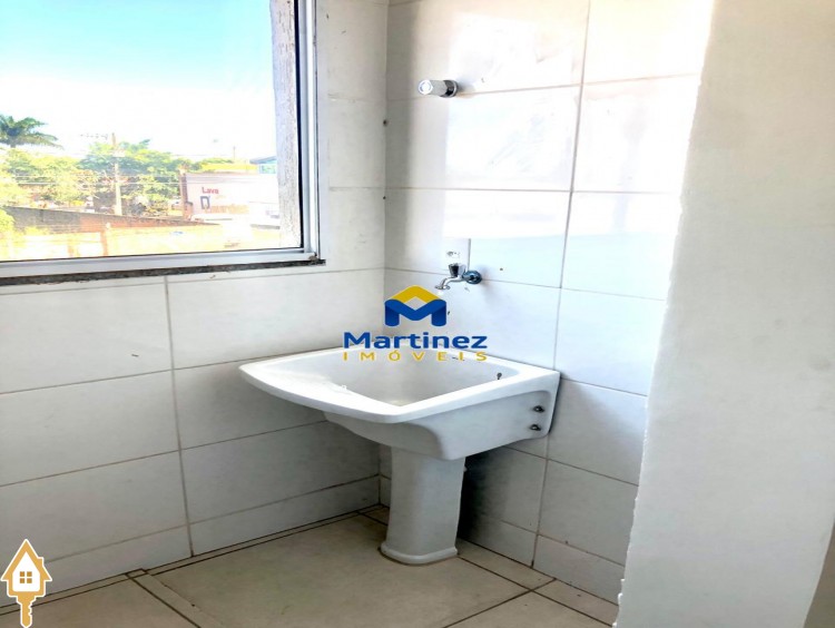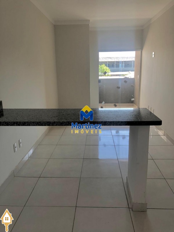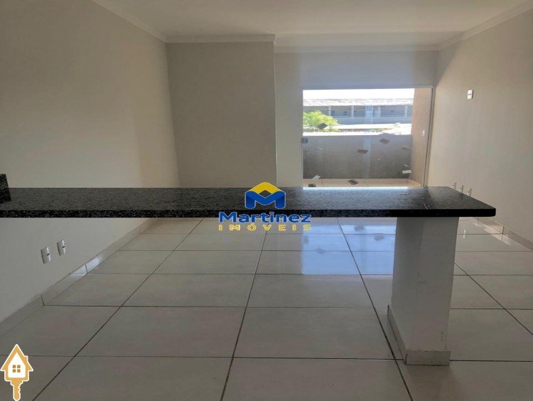 2 Quartos (sendo 1 suíte) Sala com sacada integrada à cozinha Cozinha conjugada com a sala Banheiro social Área de serviço 1 Vaga de garagem coberta