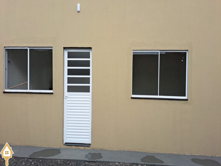 Casa nova recém construída, de esquina dois quartos sendo uma suíte, cozinha integrada com a sala, duas vagas de garagem , quintal.