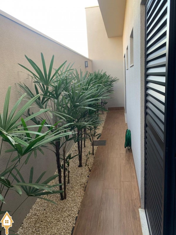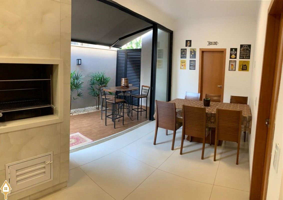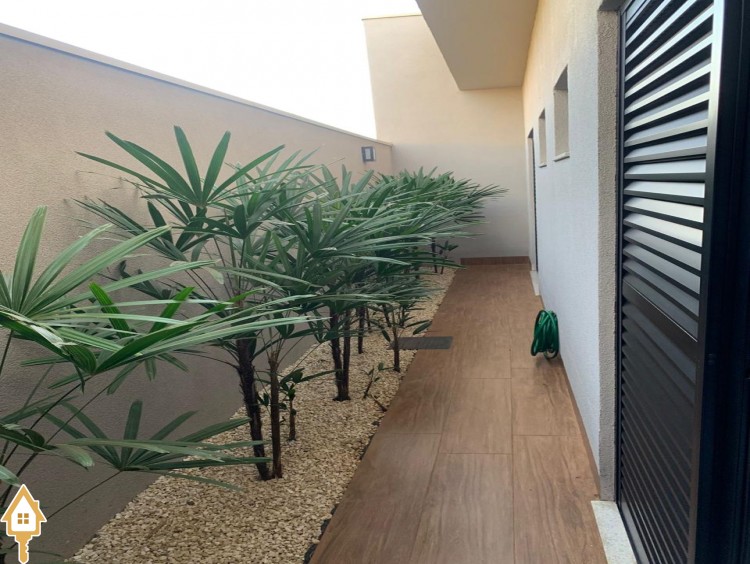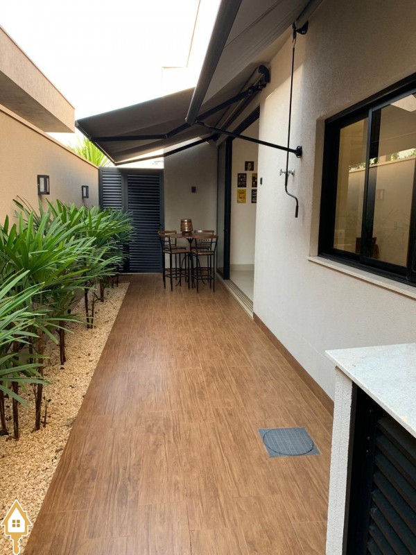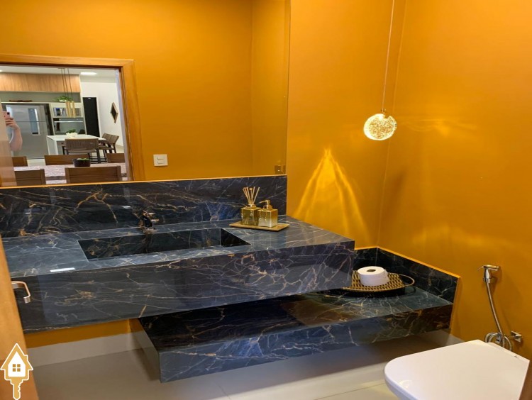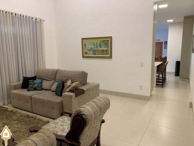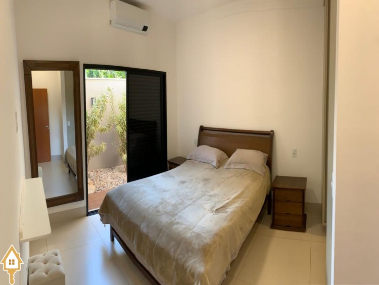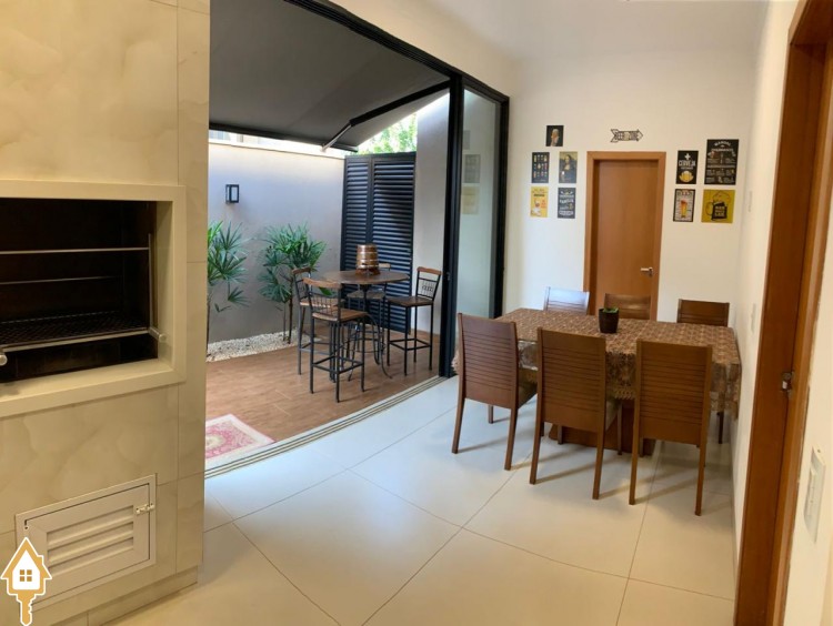 Descrição do Imóvel 04 quartos, todos com banheiro privativo e guarda-roupas planejados 02 escritórios separados por drywall em um dos quartos reversíveis Ambientes climatizados (quartos e escritórios) com controle via aplicativo 04 vagas de garagem, sendo 02 cobertas Armário roupeiro adicional para organização Sala ampla com pé direito duplo e parede de acabamento em pedra na área da TV Cozinha equipada com armários planejados Área gourmet com churrasqueira integrada à cozinha Área lateral coberta por toldo automatizado Sistema de aquecimento de água fotovoltaico com boiler de 600 litros Sistema de pressurização para água quente e fria