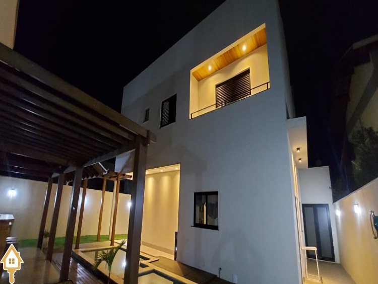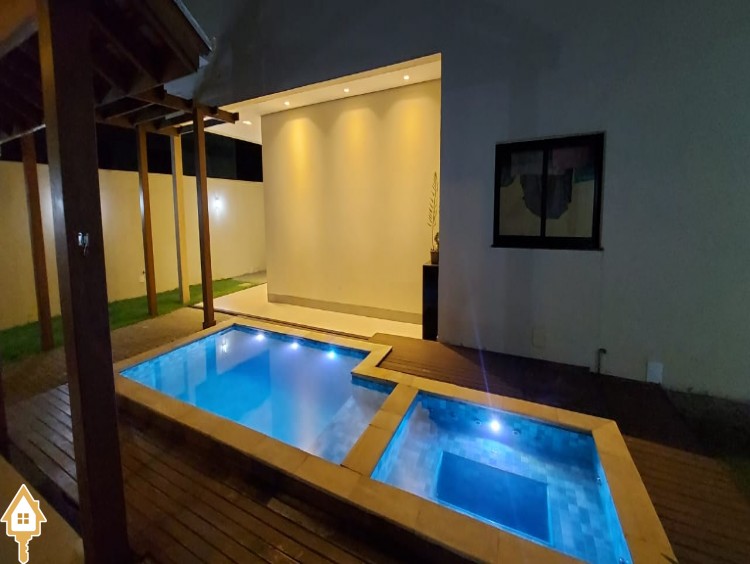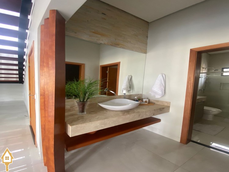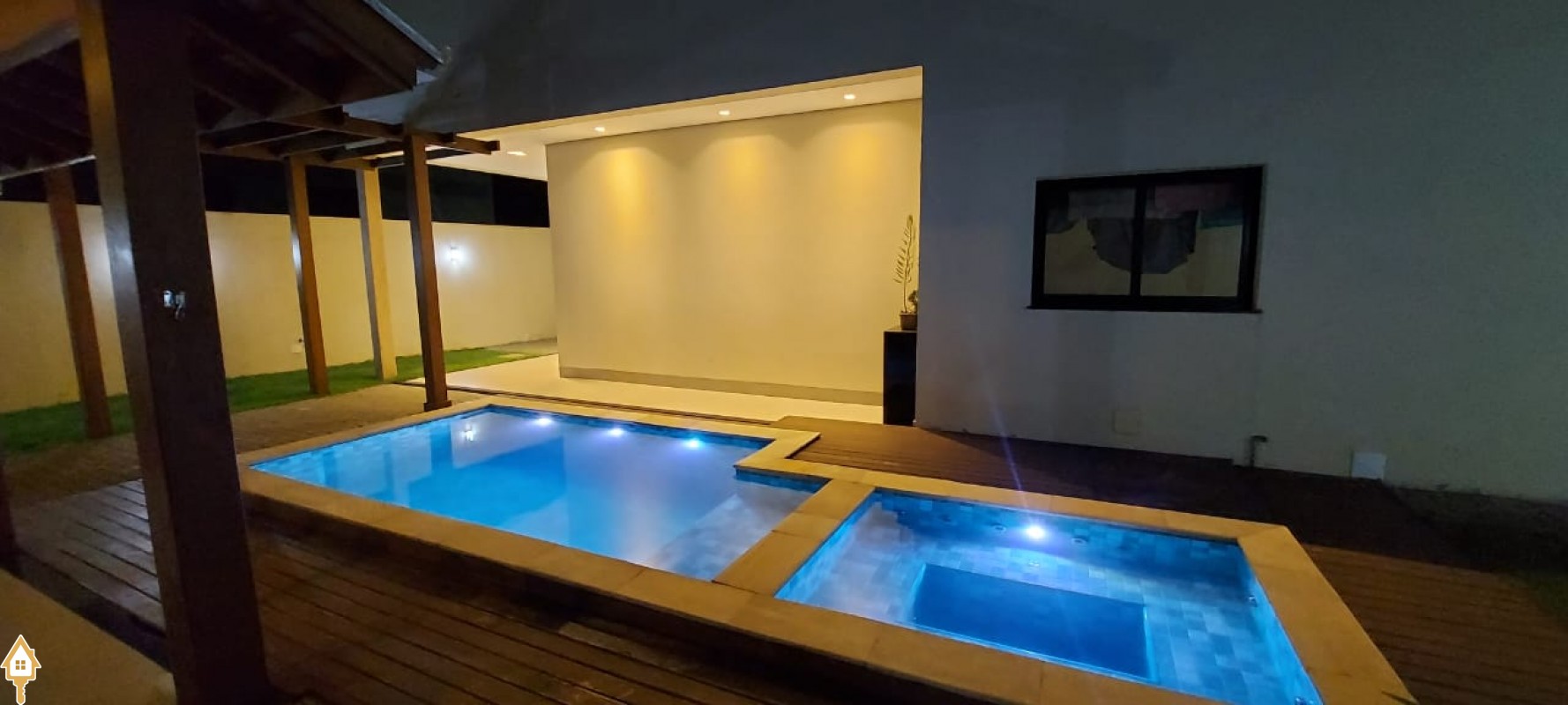Diferenciais: Localização estratégica dentro do condomínio, em frente à praça principal Casa de esquina com maior privacidade e circulação facilitada Pé direito duplo na sala, proporcionando sofisticação e amplitude Suíte master com closet e sacada exclusiva Área de lazer completa: piscina, sauna, banheira de hidromassagem, quiosque e churrasqueira Estrutura ideal para receber e confraternizar, com fogão e forno de lenha Amplo quintal e áreas de jardinagem, valorizando o contato com a natureza Projeto arquitetônico moderno com escada em madeira e estrutura metálica Garagem para 4 veículos, garantindo comodidade e segurança