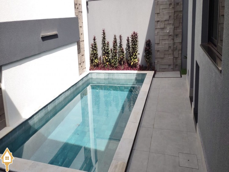 -03 suítes(sendo uma master) -Armários embutidos e closet -Sala 03 ambientes pé direito 4,80 -Painel MDF sala e na suíte principal -Lavabo -Piso porcelanato -Iluminação embutida em LED -Telhas termo acústicas -Aquecimento solar -boiller 800 litros -esquadrias aluminio com persianas automáticas -ar condicionado -Cozinha planejada -área serviço completa -Área lazer com piscina aquecida com hidro -ducha e deck -jardins -Garagem 04 carros