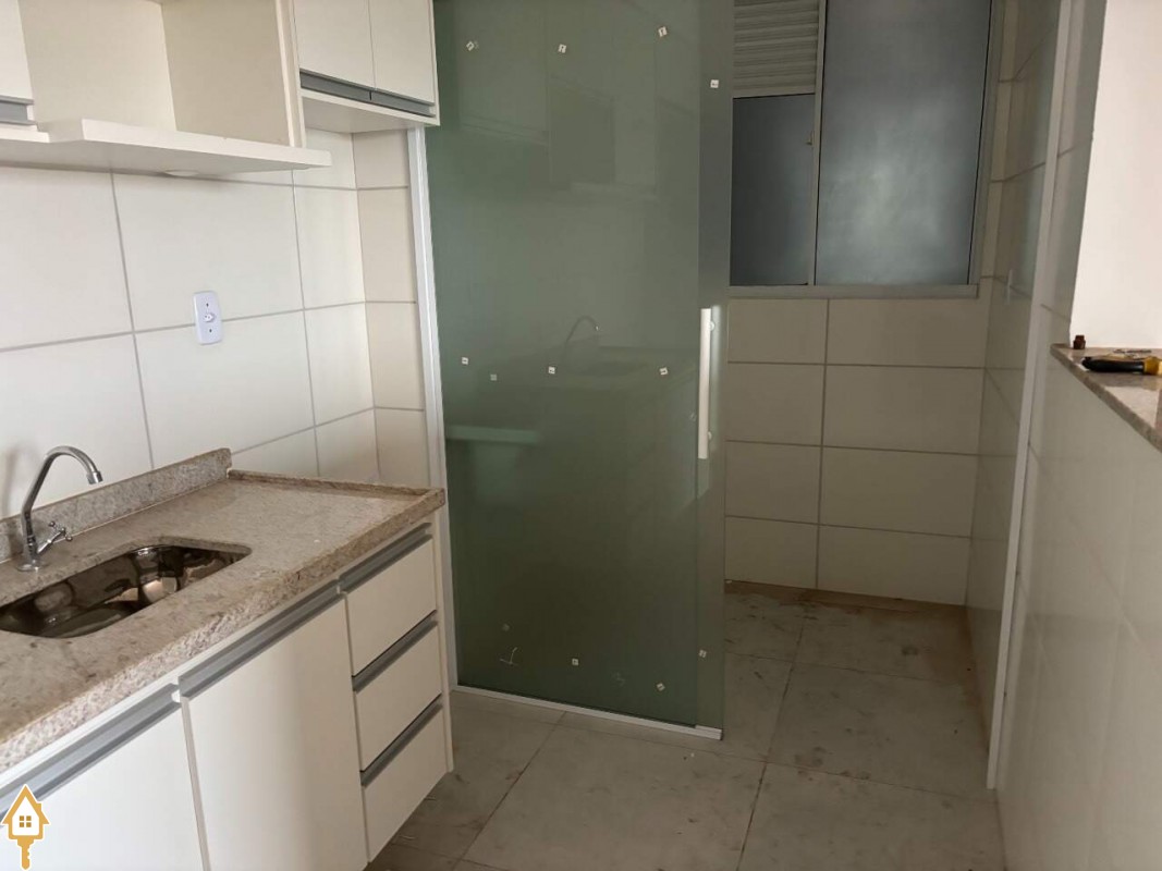 apartamento, com dois quartos com armários Planejados, banheiro social com armários e box, sala sacada e painel para TV - cozinha com armários e área de serviço separada, da cozinha com porta em blindex, portaria 24 horas, piscina e espaço para descansar.