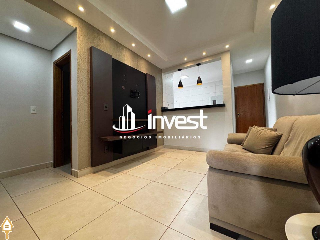 - 2 quartos sendo uma suíte (com armários e ar condicionado na suíte)