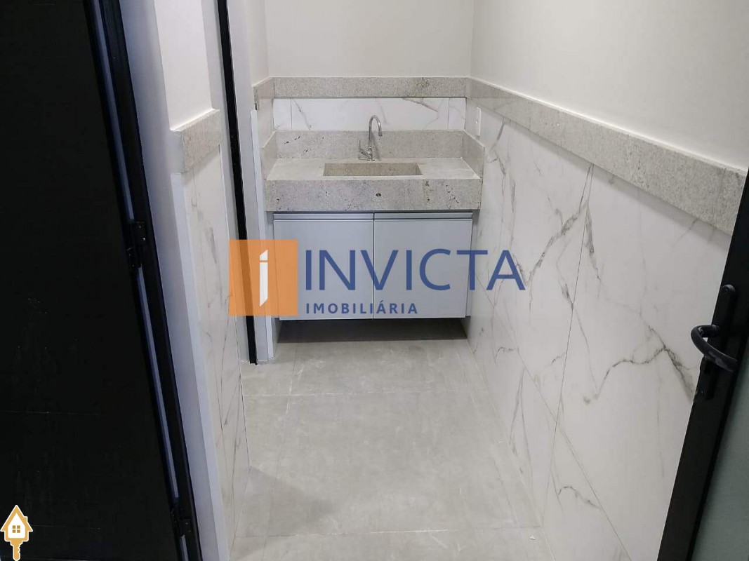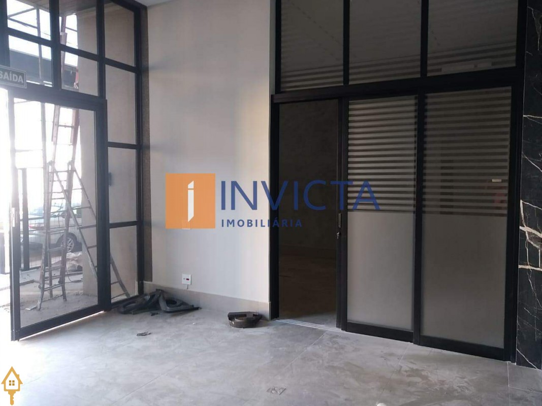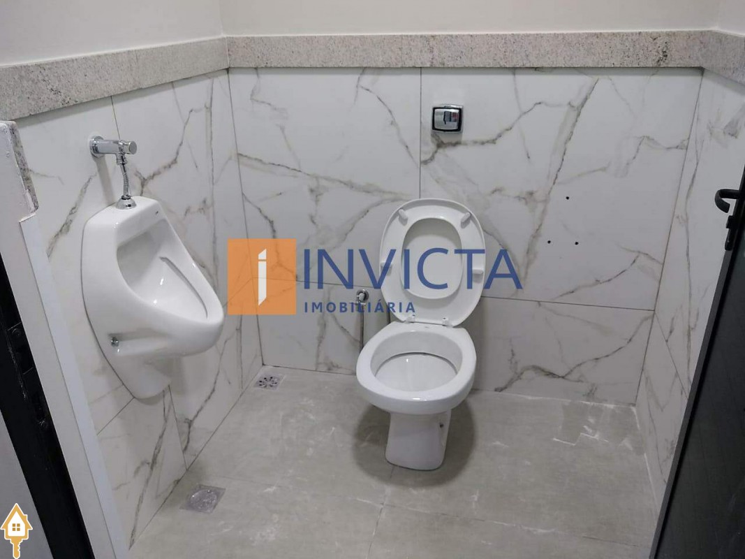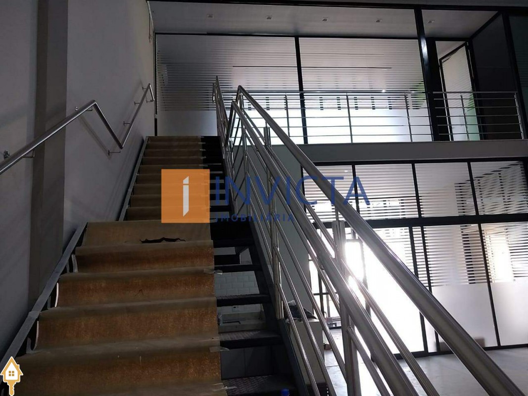 Galpão comercial de 352,7 m², com infraestrutura completa: amplo salão de 18x12 com pé direito de 6 metros, equipado com ar condicionado e forro, além de uma recepção com 2 banheiros adaptados para acessibilidade, copa, cozinha, DML, mais 2 banheiros internos e um mezanino, estacionamento frontal