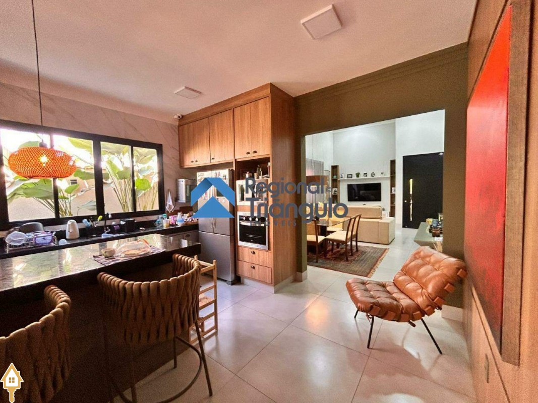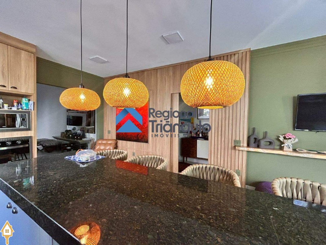 Sala de tv com salva de jantar com lustre ar cond e cortina
