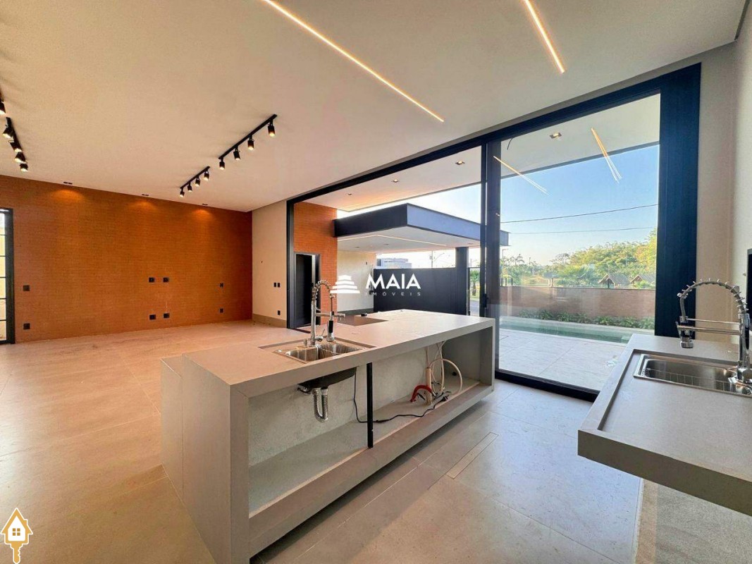 - Sala integrada com cozinha e piscina, pé direito elevado;