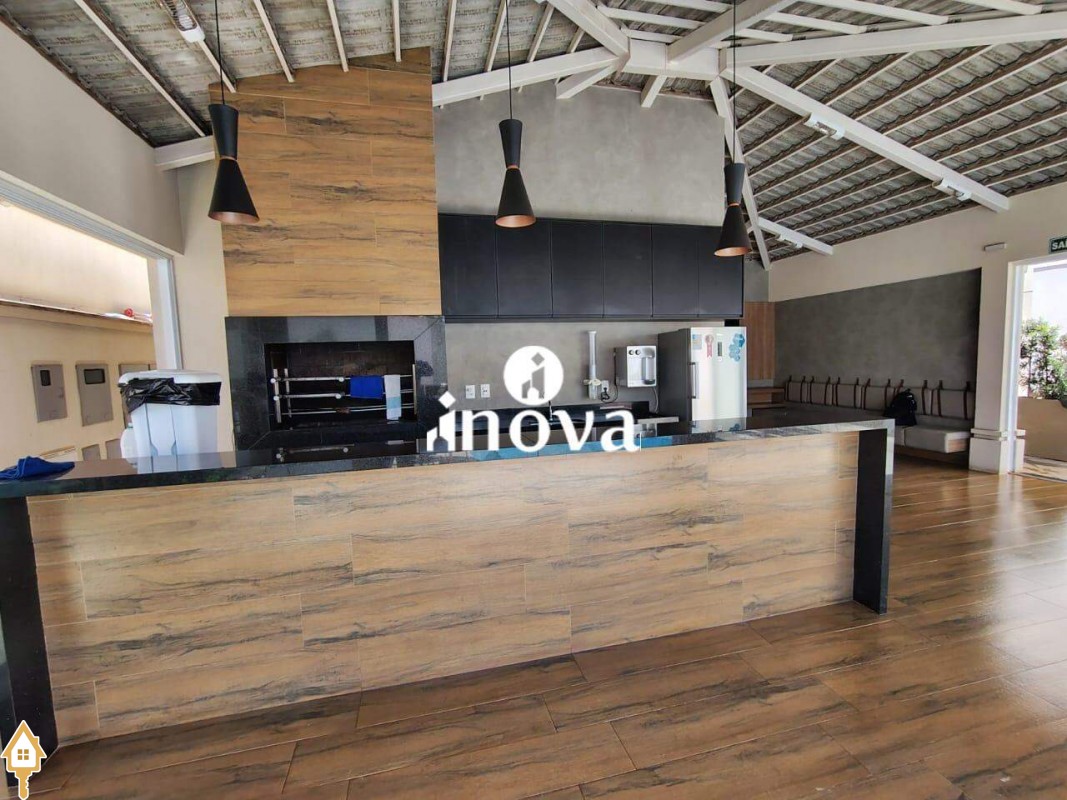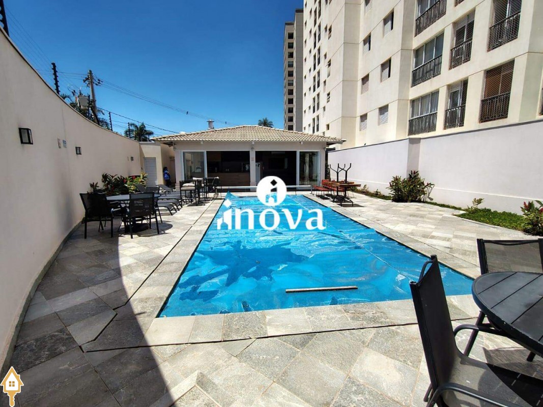 Condomínio com área gourmet, piscina, salão de festas e playground.