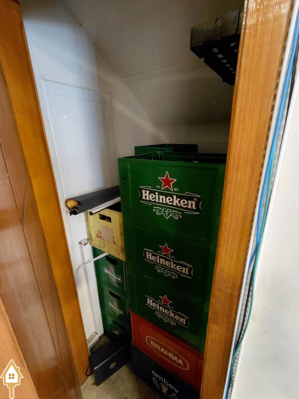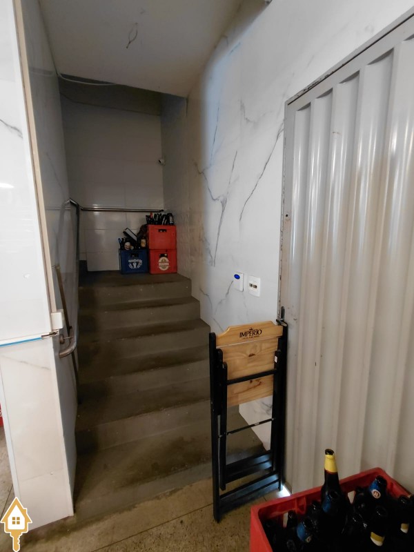 Escadaria com acesso à cozinha superior, quarto de depósito e banheiro