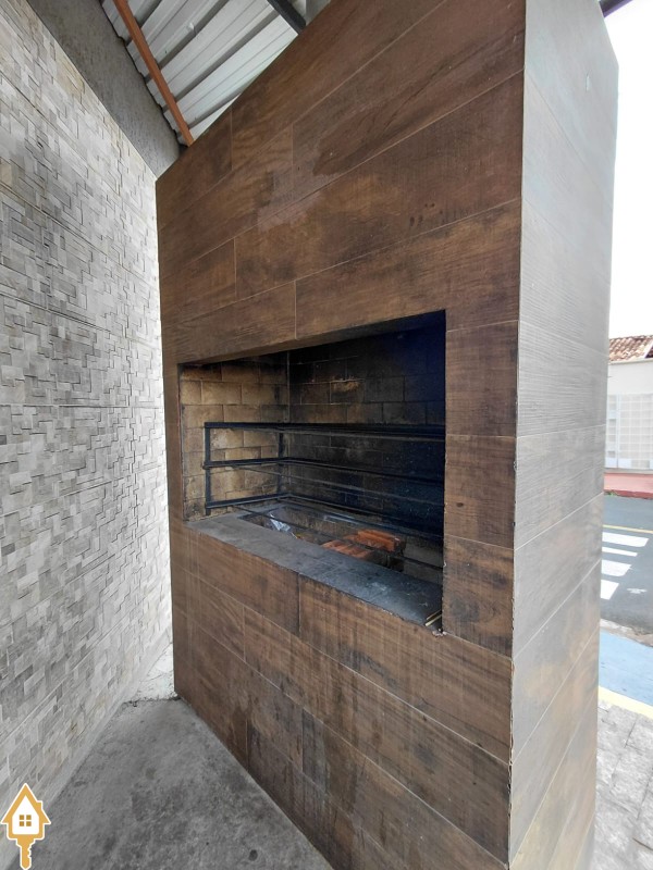 Churrasqueira com deck amadeirado, ideal para lazer e confraternizações