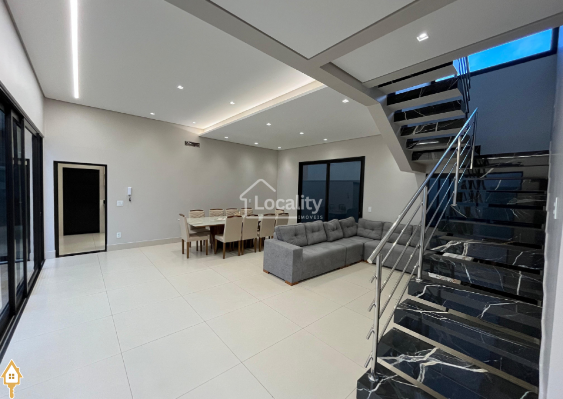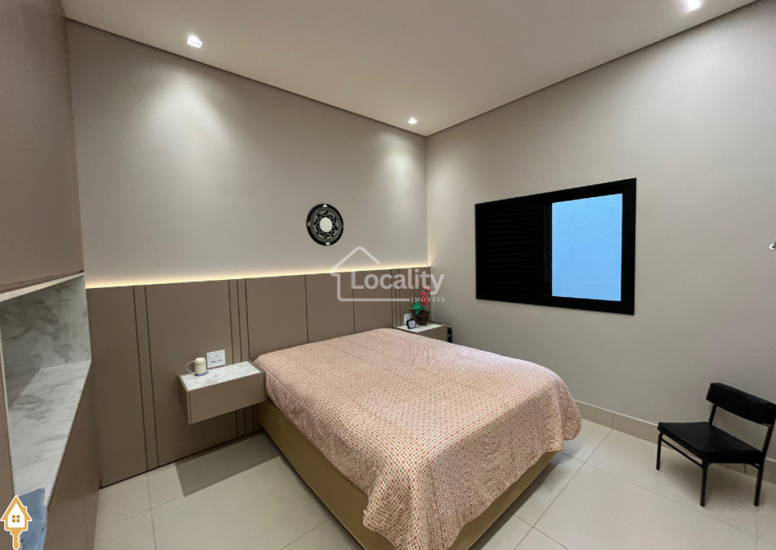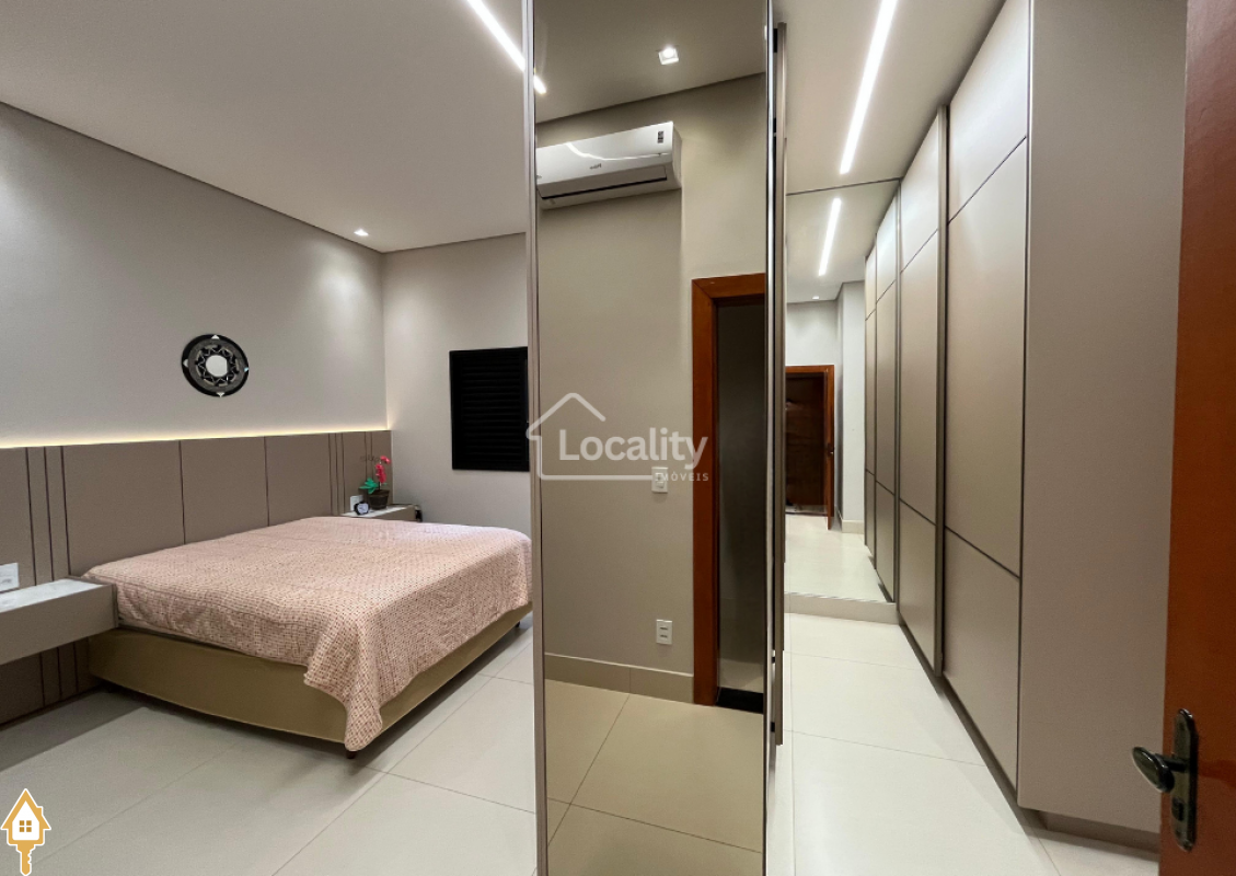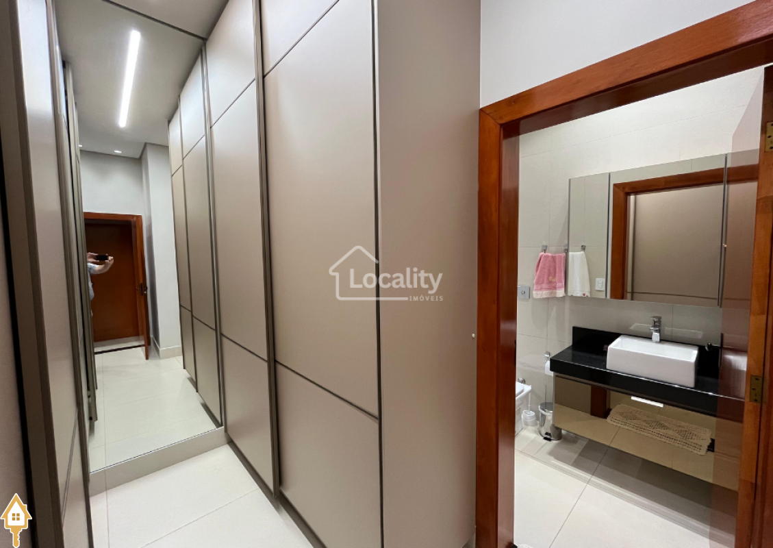Linda residência em condomínio fechado, com projeto moderno e espaços amplos, casa Nova 1 Ano de construção. O imóvel conta com 4 quartos, sendo 3 suítes, todos com armários planejados.