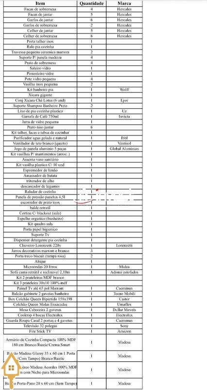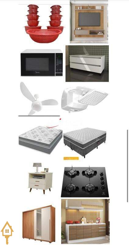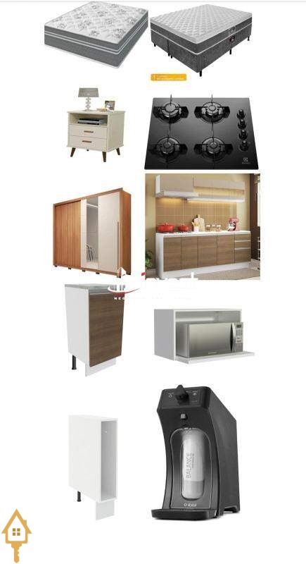 - Cozinha com armários na cozinha ,utensílios domésticos, geladeira, purificador de agua (natural e fria), micro-ondas, cooktop 4 bocas;