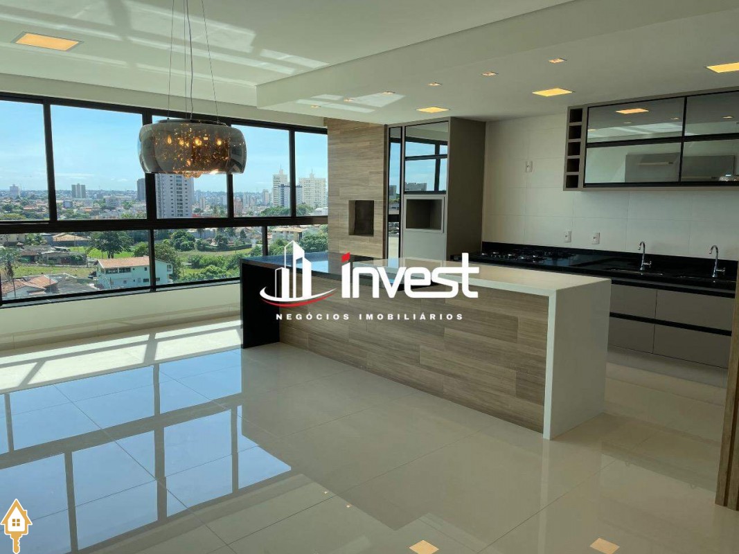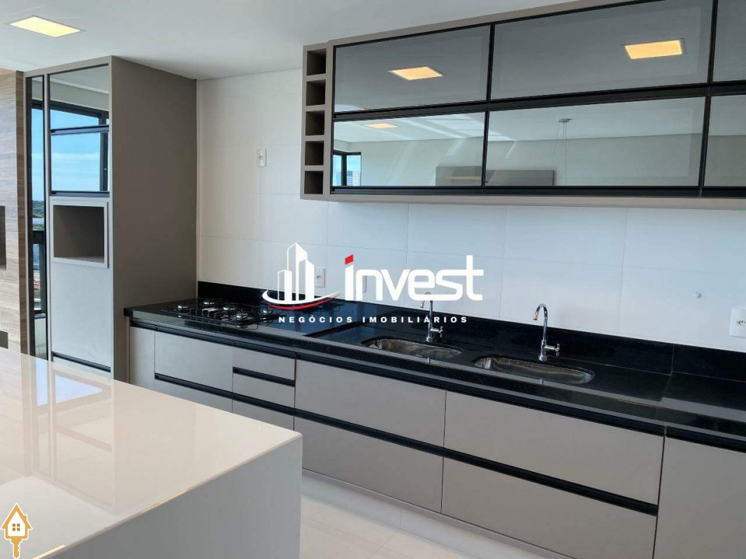 - Cozinha planejada diferenciada com ilha moderna no acabamento Nanoglass, gerando um ambiente requintado e sofisticado