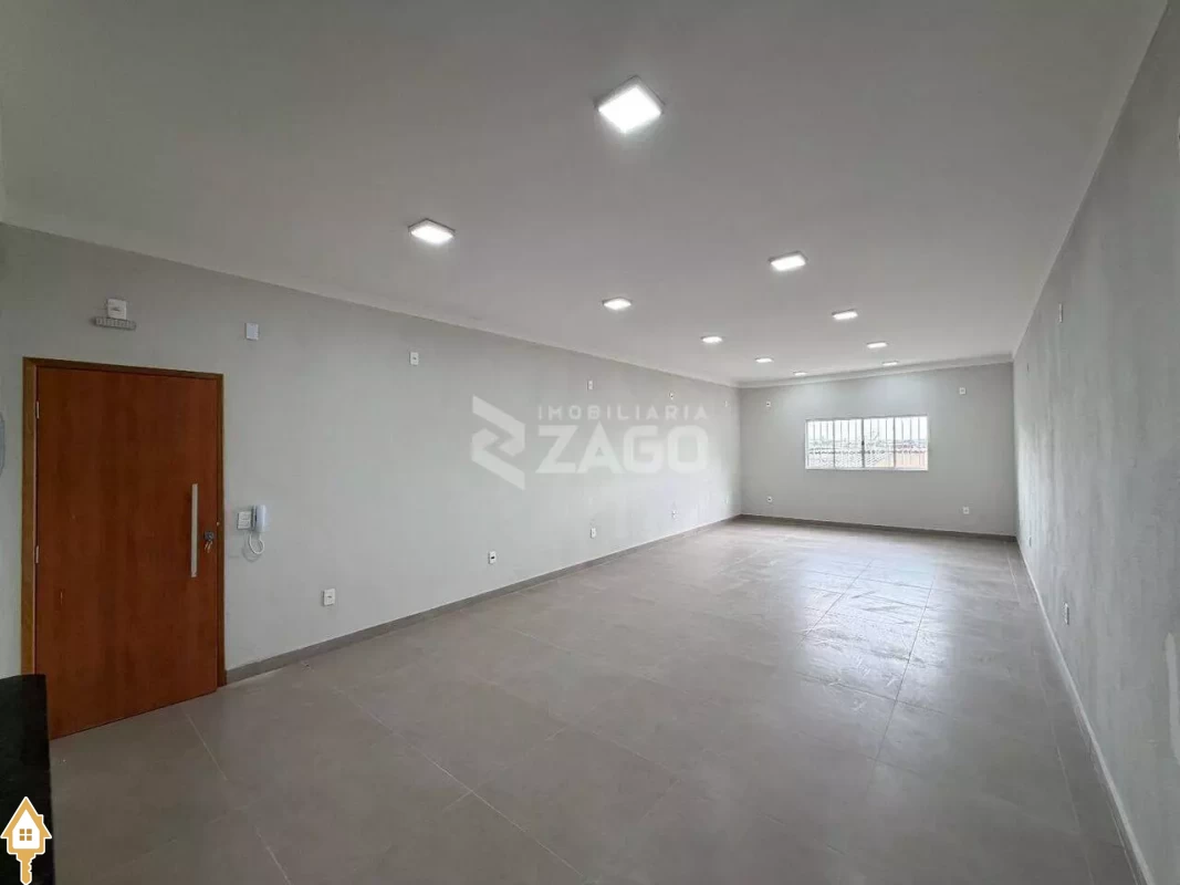 Ampla sala comercial com aproximadamente 54 metros quadrados para locação, composta por banheiro e copa.