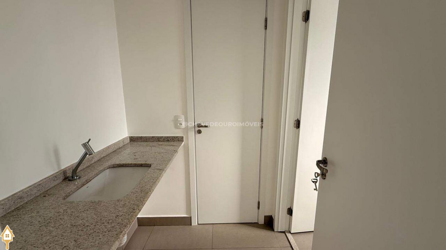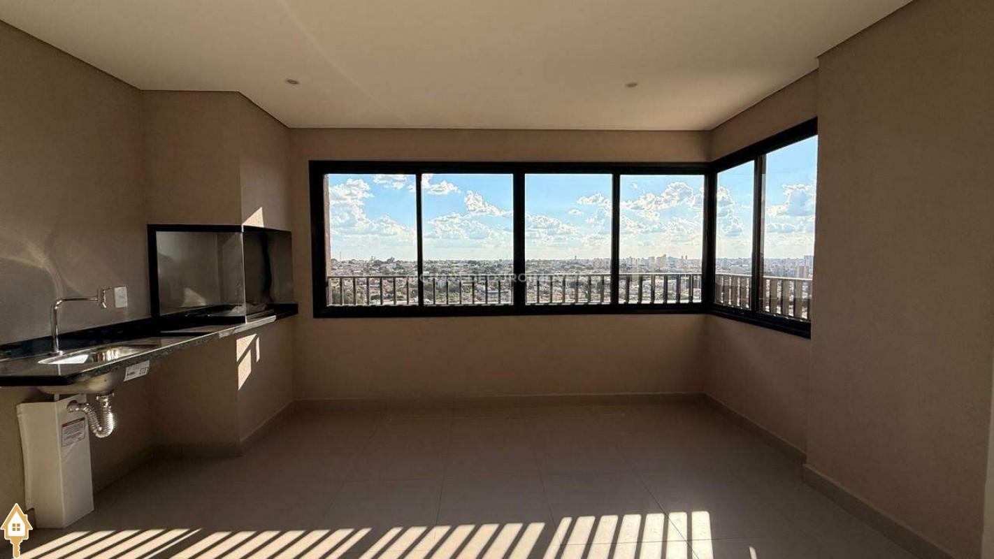 Apartamento para locação localizado no bairro Parque do Mirante em Uberaba, MG. Composto de três suítes, sendo duas no modelo canadense. Dispõe de três banheiros, ambiente Social com sala, varanda gourmet, área privativa e duas vagas de garagem.