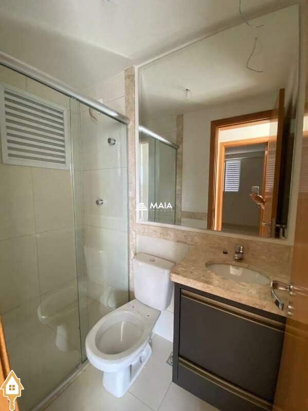 - Banheiro social com armário, box em blindex e espelho;