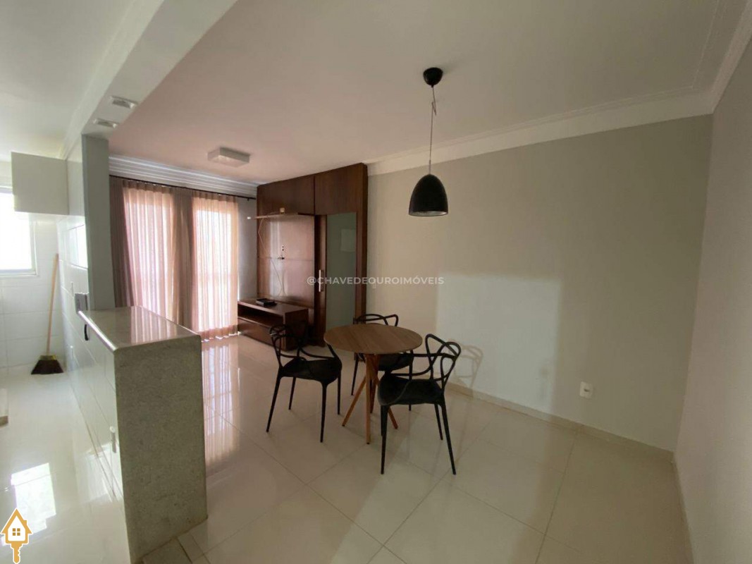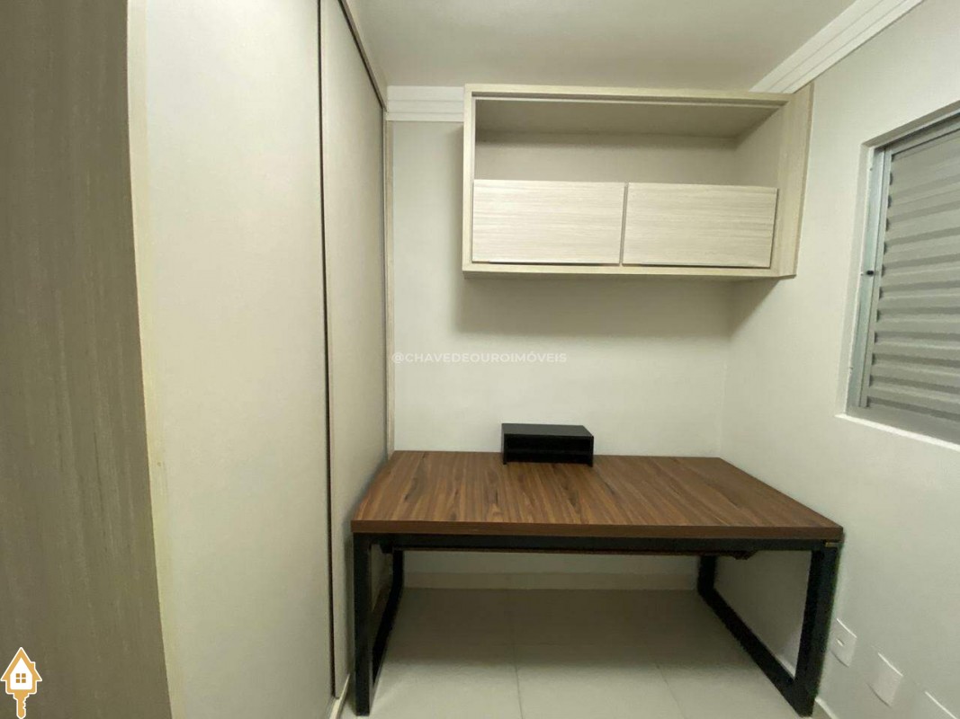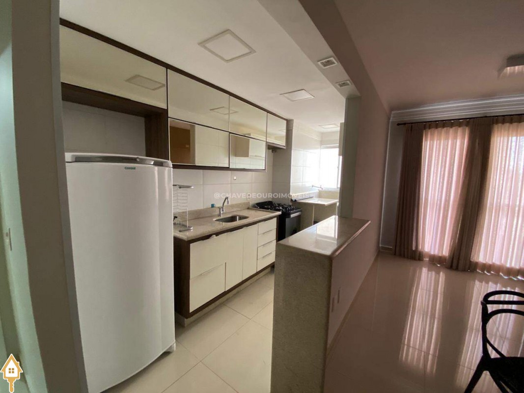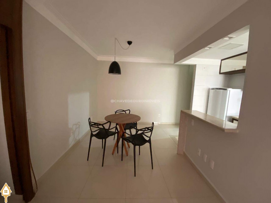 Apartamento semi mobiliado no condomínio Ile de France, composto por 3 quartos planejados, sendo uma suíte com ar condicionado e painel de TV, mais dois quartos com planejados e um com mesa de trabalho, banheiros social e suíte com box em blindex. Cozinha americana rica em planejados com geladeira e fogão, integrada com área de serviço e sala ampla com sacada para dois ambientes com mesa de jantar e painel de TV, e uma vaga de garagem coberta.