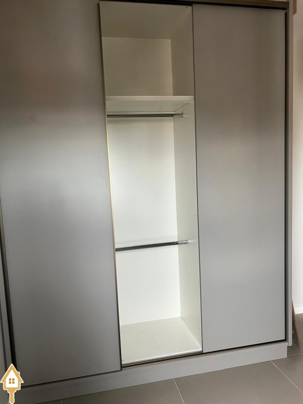 Roupeiro no corredor, agregando praticidade ao dia a dia.