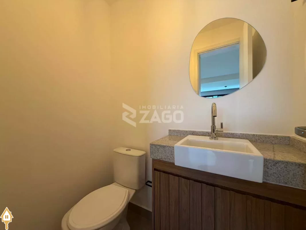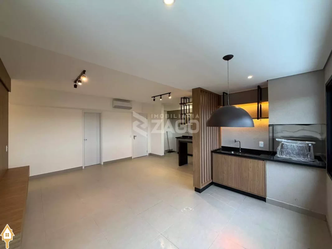 Possui 3 suítes, sendo uma tradicional e duas americanas, sala ampla com lavabo integrada com a varanda gourmet, cozinha americana, área de serviço e duas vagas de garagem. O apartamento ja conta com dois ares condicionados instalados, sendo um na sala e outro na suite tradicional.