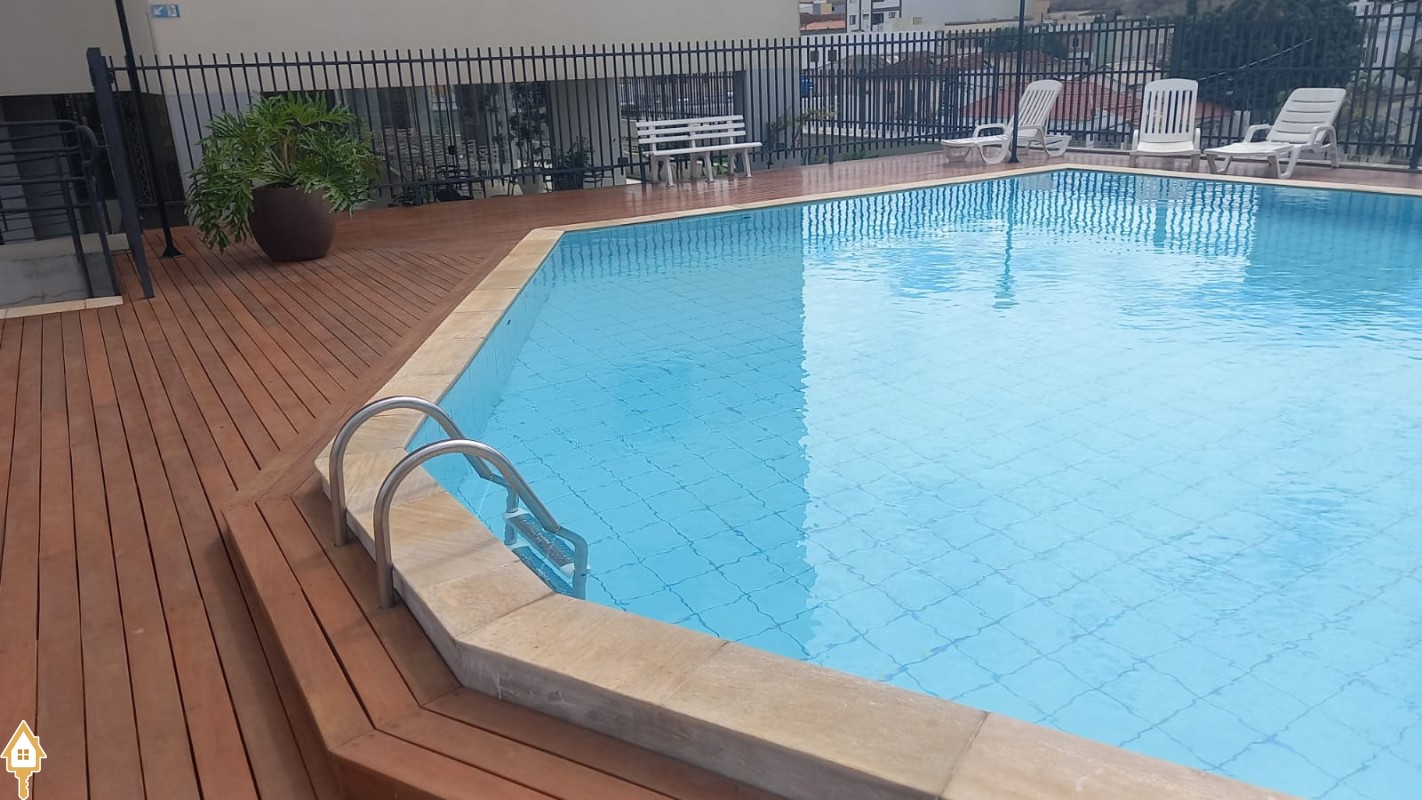 04 quartos c/ armários, sendo 01 suíte banheiro completo, banheiro social completo roupeiro no corredor, sala 02 ambientes, cozinha com armários dos dois lado, área de serviço com armário, banheiro de empregada completo, garagem para 02 carros cobertas, porteiro 24 horas, salão de festa, quadra de esporte, piscina.