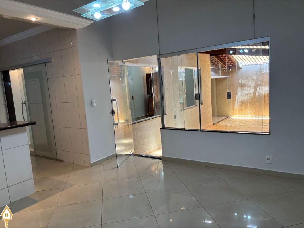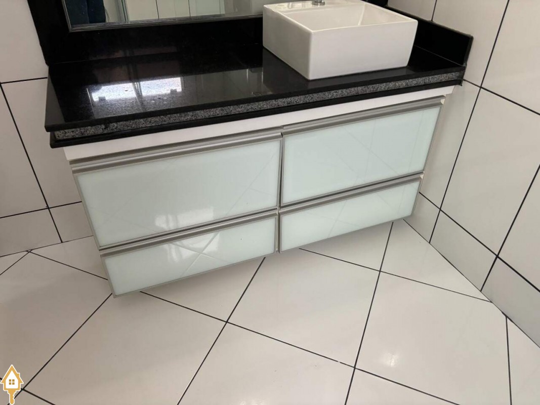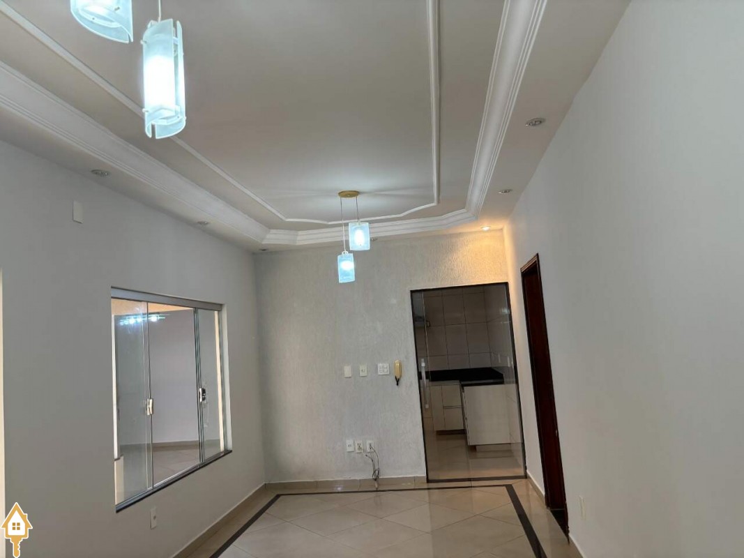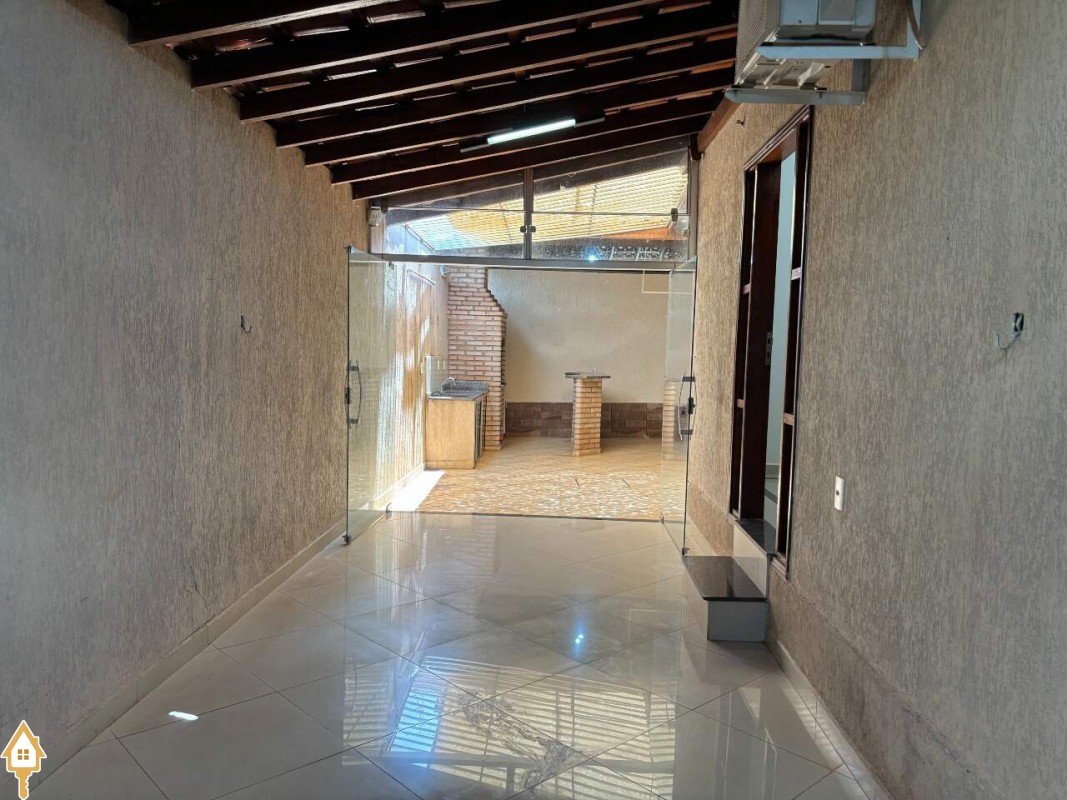 Casa com dois quartos sendo uma suíte com ar condicionado e armários, sala ampla, com luminárias, cozinha com armários e copa em espaço amplo, banheiro suíte e banheiro social com armários e box em blindex, varanda ampla, com churrasqueira, garagem coberta com portão eletrônico, e interfone. ID IMOVIEW: 5396