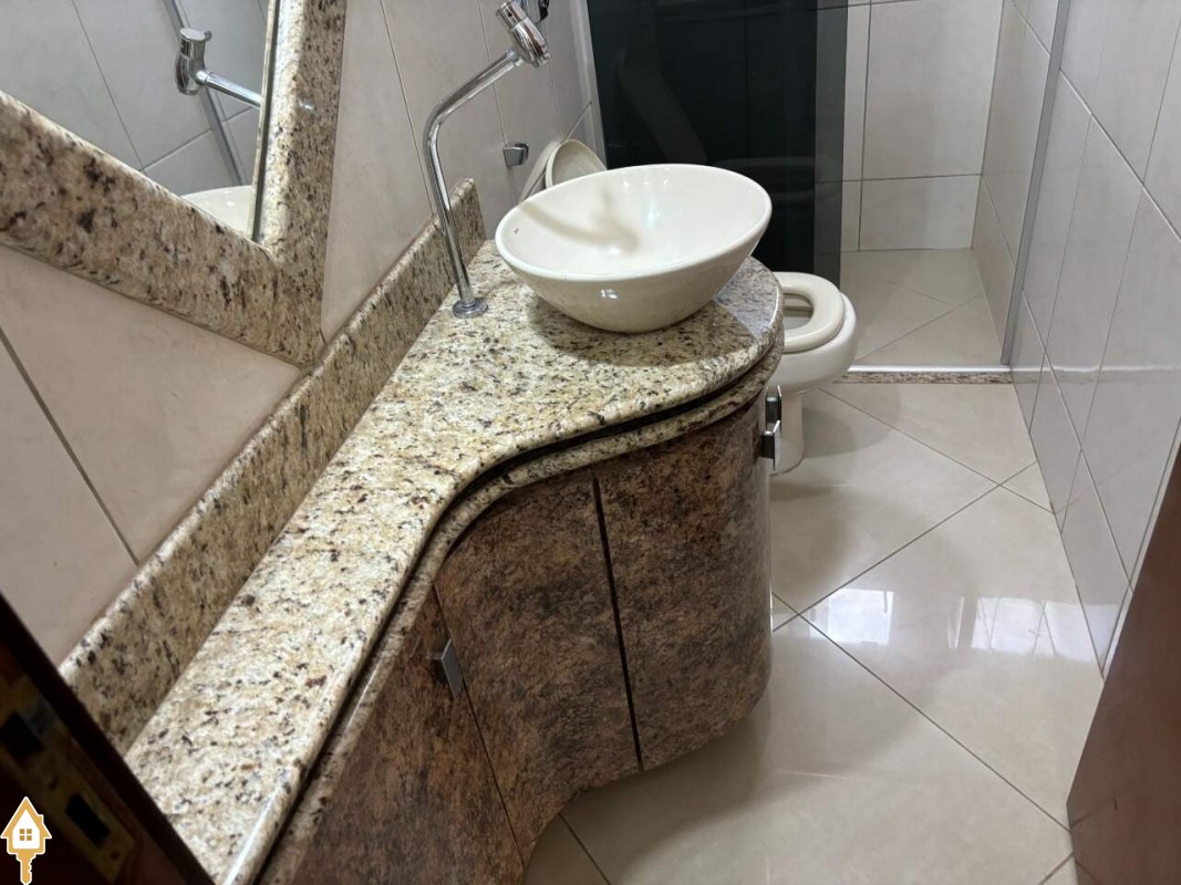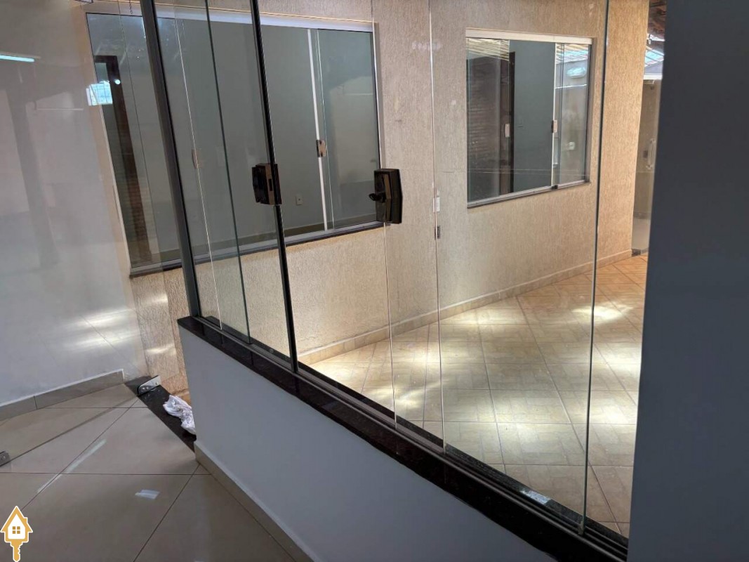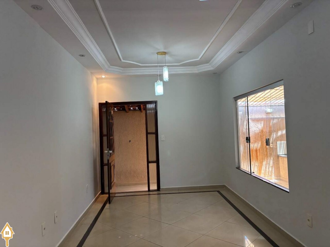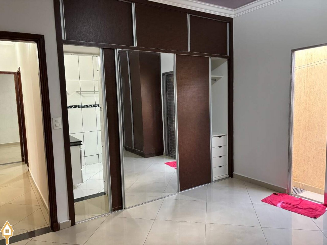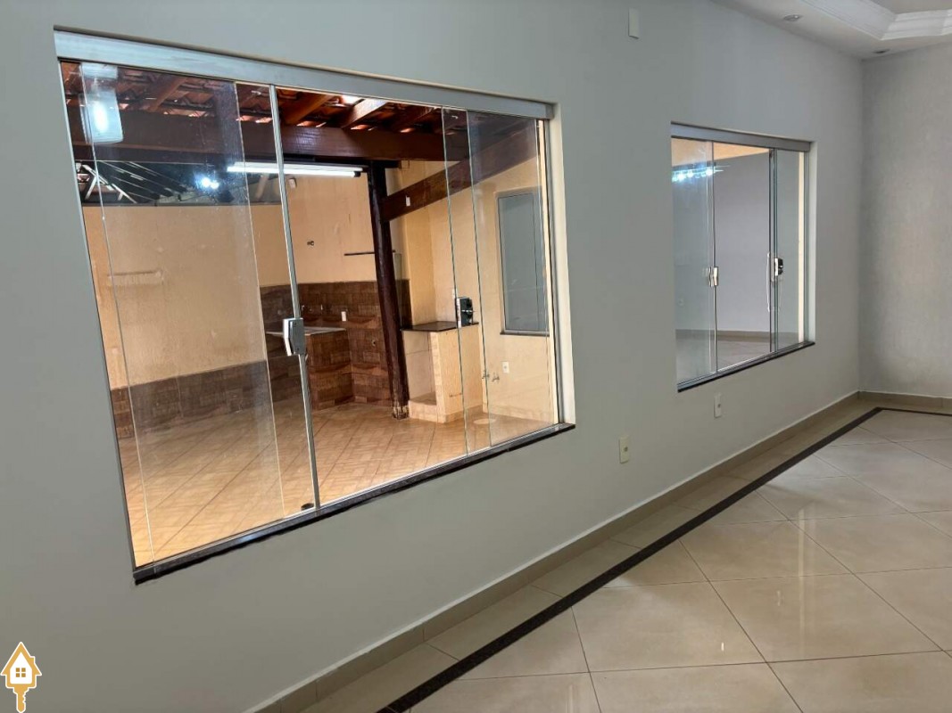 Casa com dois quartos sendo uma suíte com ar condicionado e armários, sala ampla, com luminárias, cozinha com armários e copa em espaço amplo, banheiro suíte e banheiro social com armários e box em blindex, varanda ampla, com churrasqueira, garagem coberta com portão eletrônico, e interfone. ID IMOVIEW: 5396
