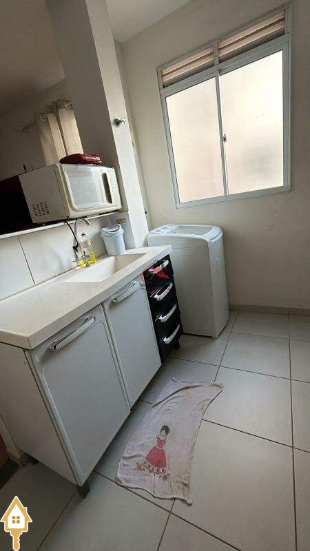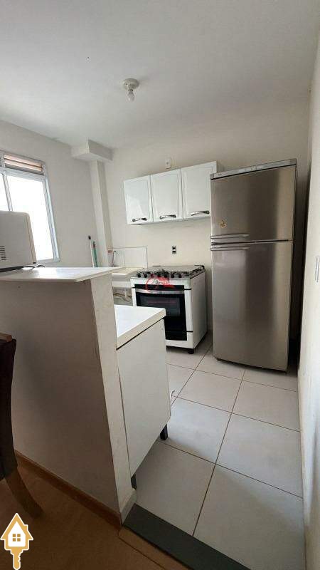- Cozinha equipada com armários planejados, fogão e geladeira