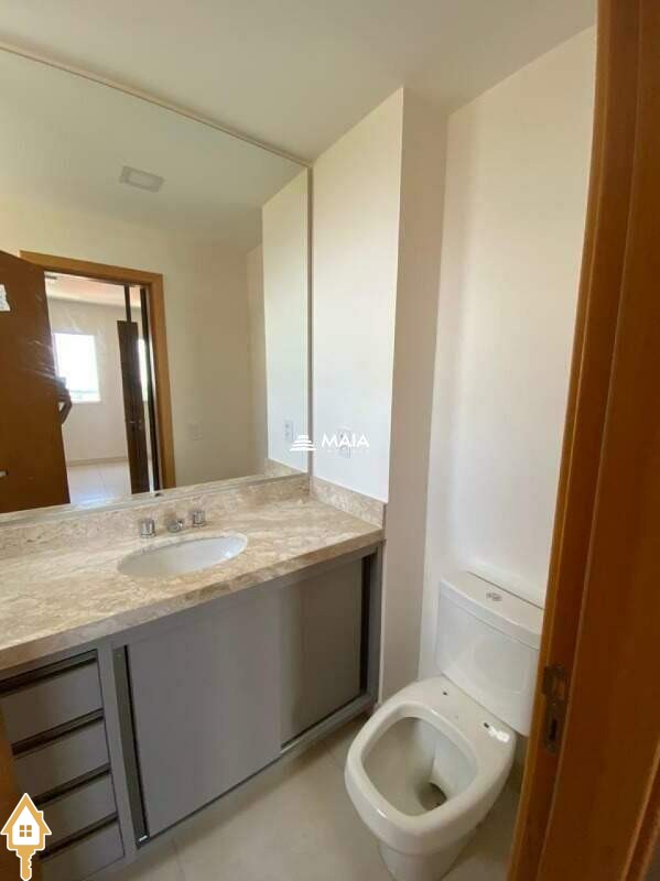 - banheiro social com armário, box em blindex e espelho