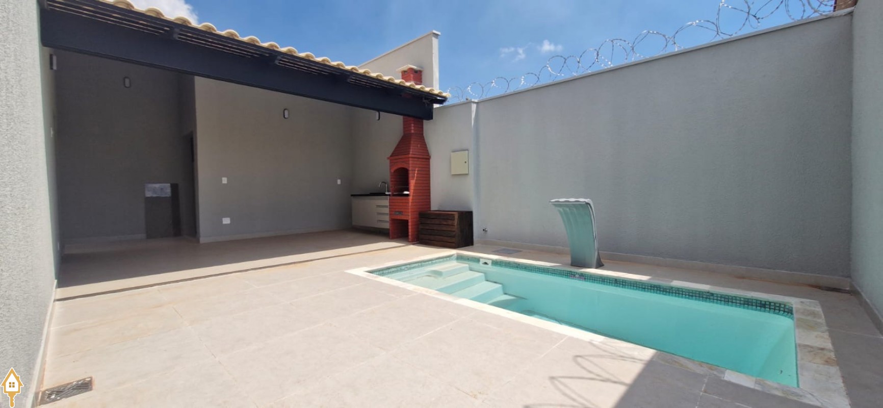 3 suítes com armários sendo a master com closet 5 metros, sala de tv, copa, cozinha planejada, lavanderia, despensa, varanda gourmet com piscina aquecida, banheiro, aquecimento solar, portão eletrônico, garagem ampla, jardim.