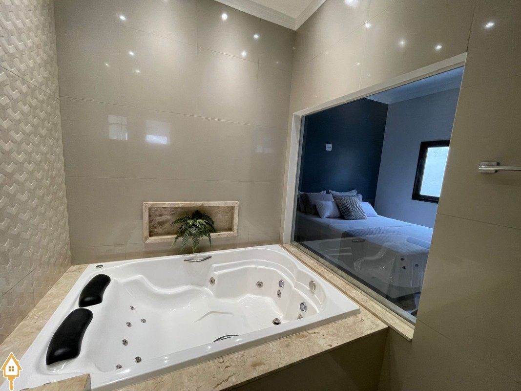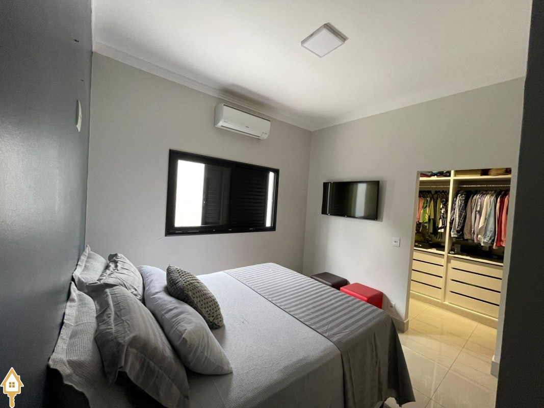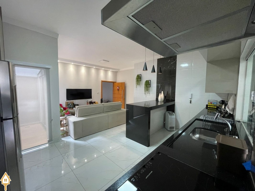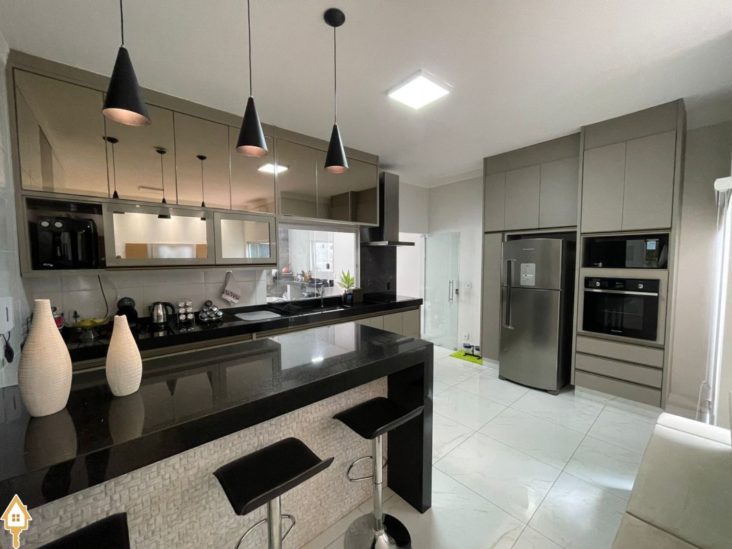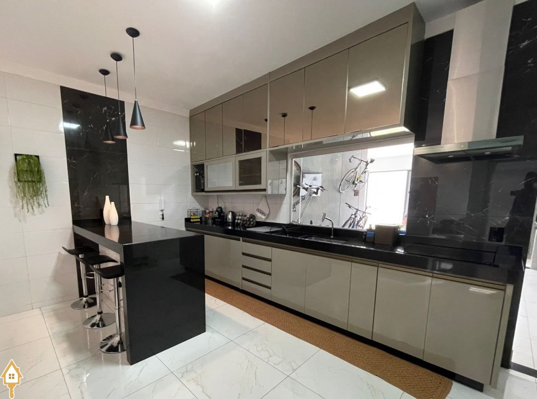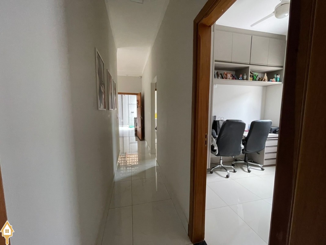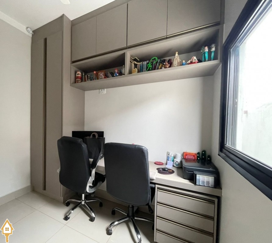 O imóvel conta com três quartos, sendo duas suítes, sala ampla, banheiro social, lavabo e escritório, atendendo bem à rotina familiar ou ao trabalho em casa.