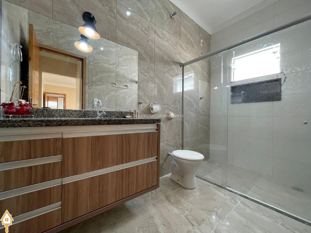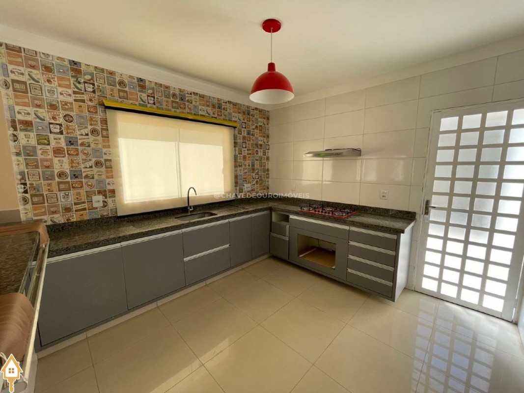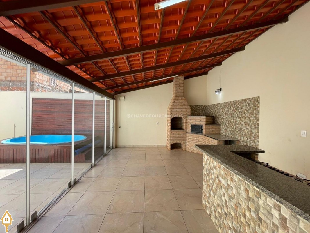Os banheiros são equipados com armários planejados e ótimo acabamento. Na área externa, o destaque fica por conta de uma completa área gourmet coberta e fechada em Blindex, com pia, bancada, móveis planejados, churrasqueira, forno e fogão a lenha, além de cooktop, ideal para momentos de lazer com família e amigos. A casa ainda dispõe de uma piscina com deck de madeira, quintal espaçoso, corredores laterais e área de serviço.