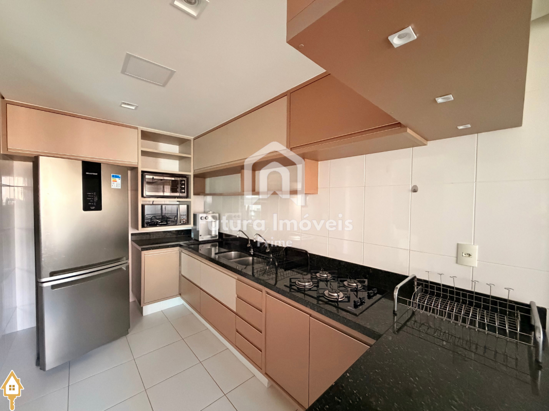• Cozinha completa, com forno, cooktop, geladeira, microondas e filtro;