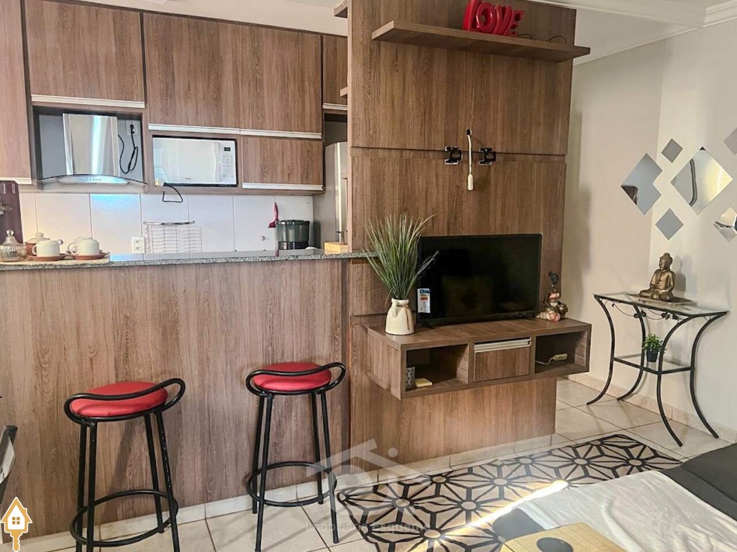 Apartamento totalmente mobiliado, incluso móveis, eletrodomésticos, talheres e roupa de cama.