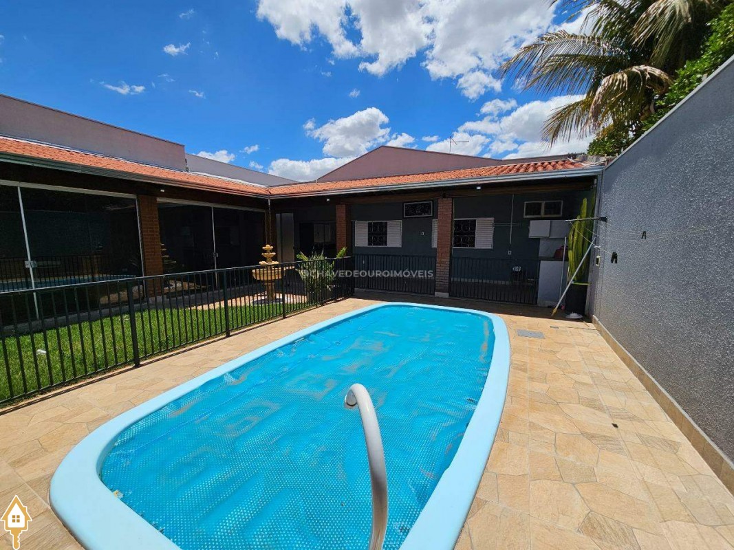 Casa localizada no bairro Jardim São Bento em Uberaba, MG. Composta de três quartos, sendo uma suíte. Dispõe de piscina aquecida com hidromassagem, cascata, iluminação especial e churrasqueira, e duas vagas cobertas e independentes.