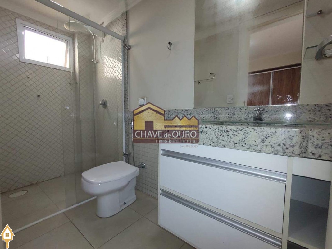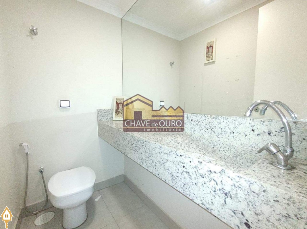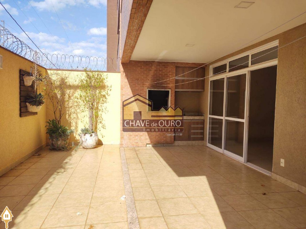 Apartamento para locação em Uberaba/MG, com três suítes, todas com armários, sendo uma delas equipada com ar-condicionado. O imóvel conta com sala ampla para dois ambientes, lavabo, cozinha planejada, despensa, área de serviço com armários, varanda gourmet com churrasqueira e duas vagas de garagem.