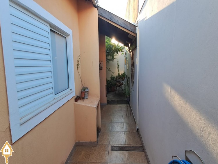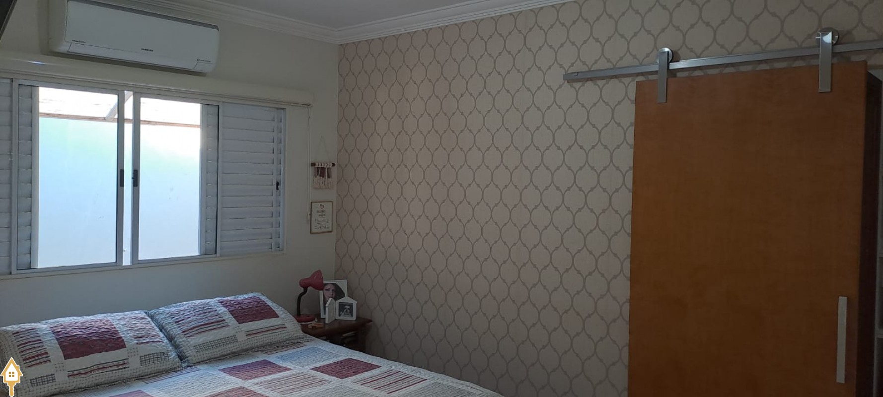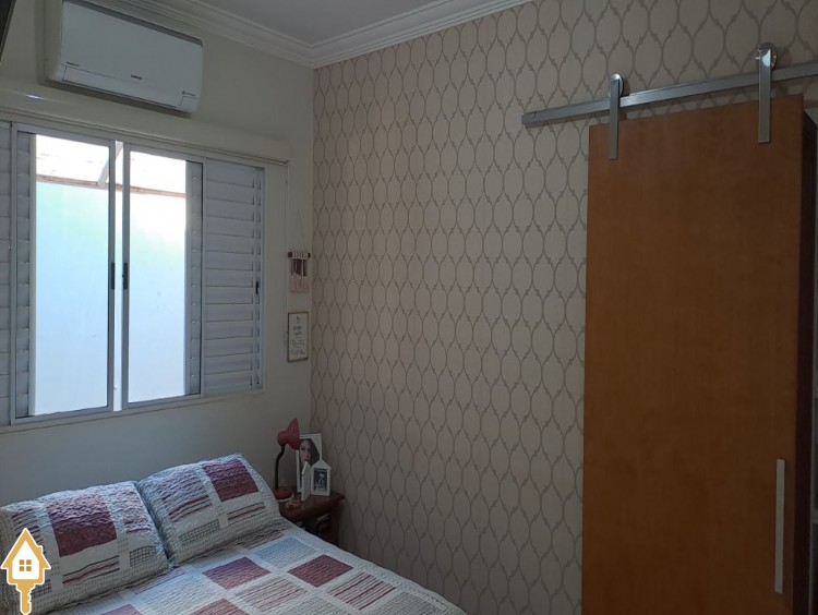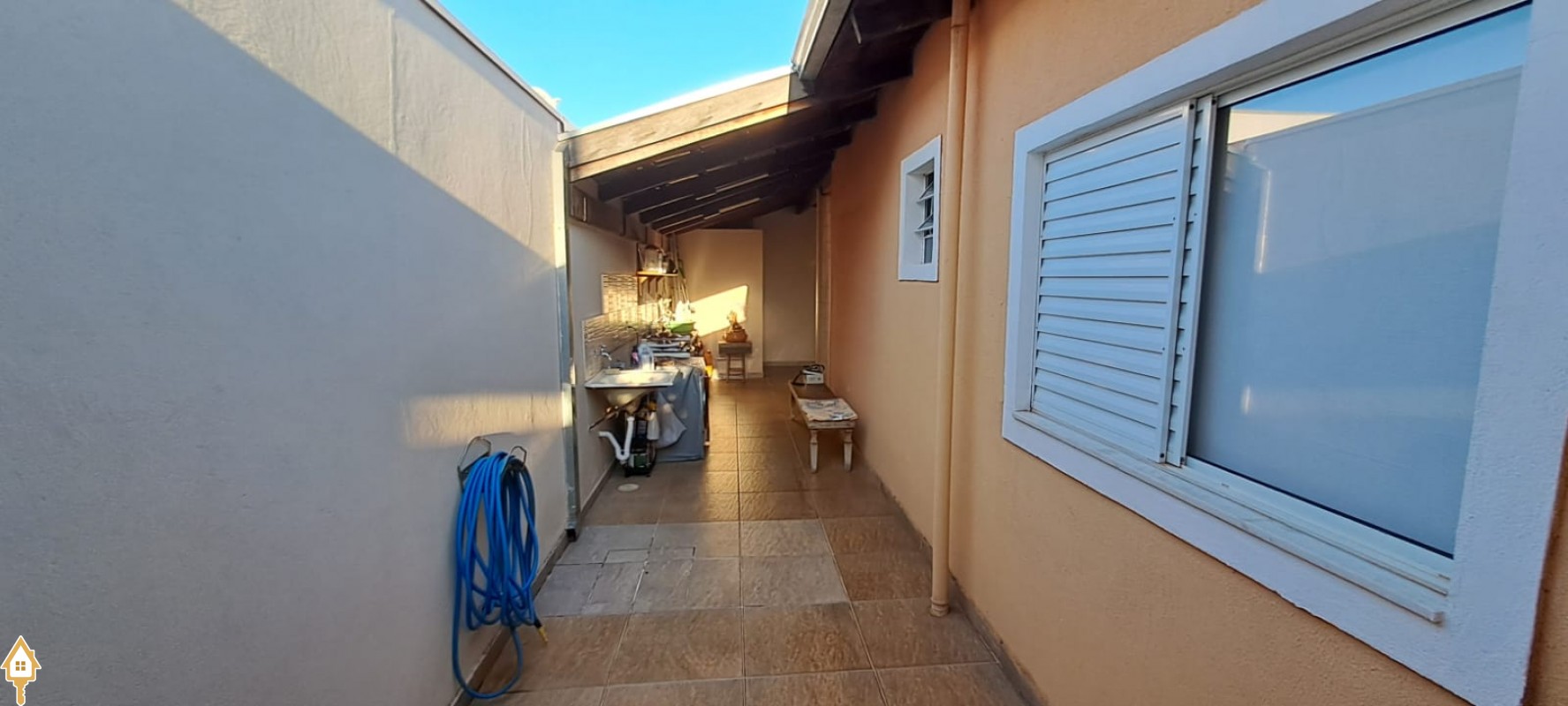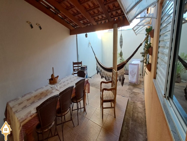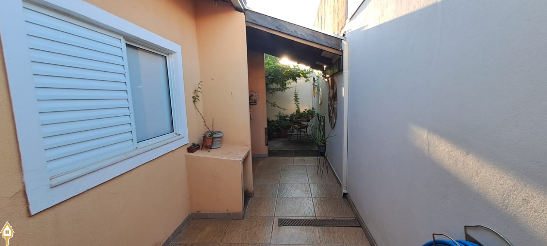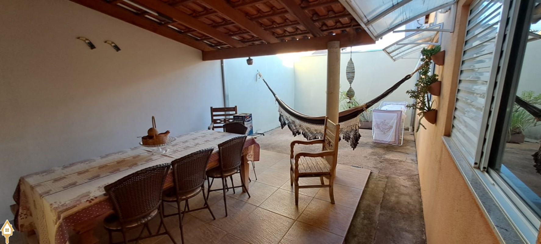 Possui 3 quartos sendo uma suíte com closet, demais quartos com armários planejados, wc social, sala 2 ambientes com jardim de inverno, cozinha com móveis planejados, quintal com varanda coberta e wc externo, garagem coberta para 2 automóveis.