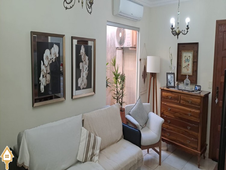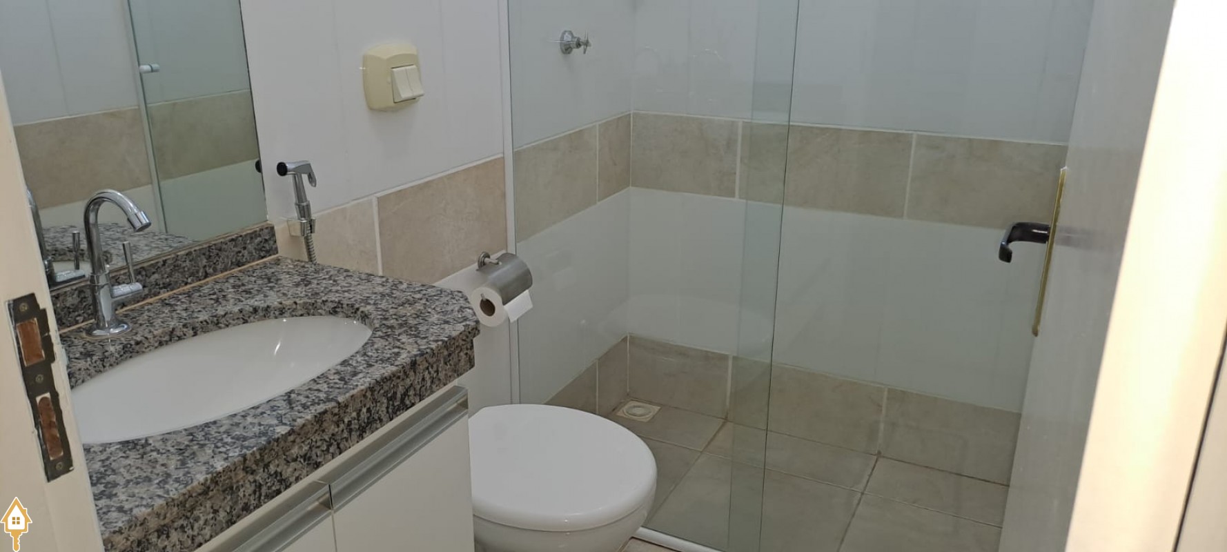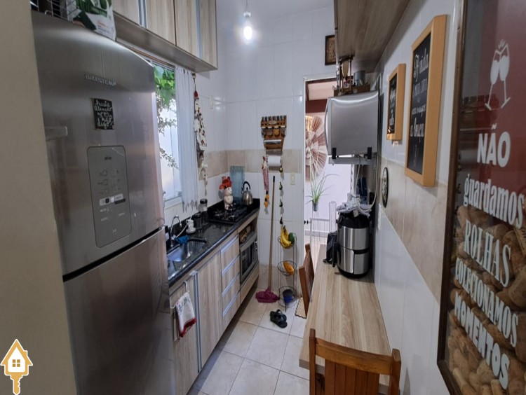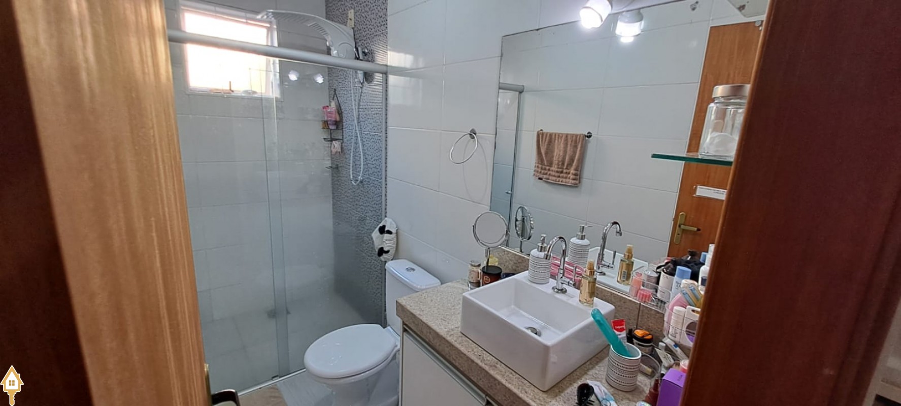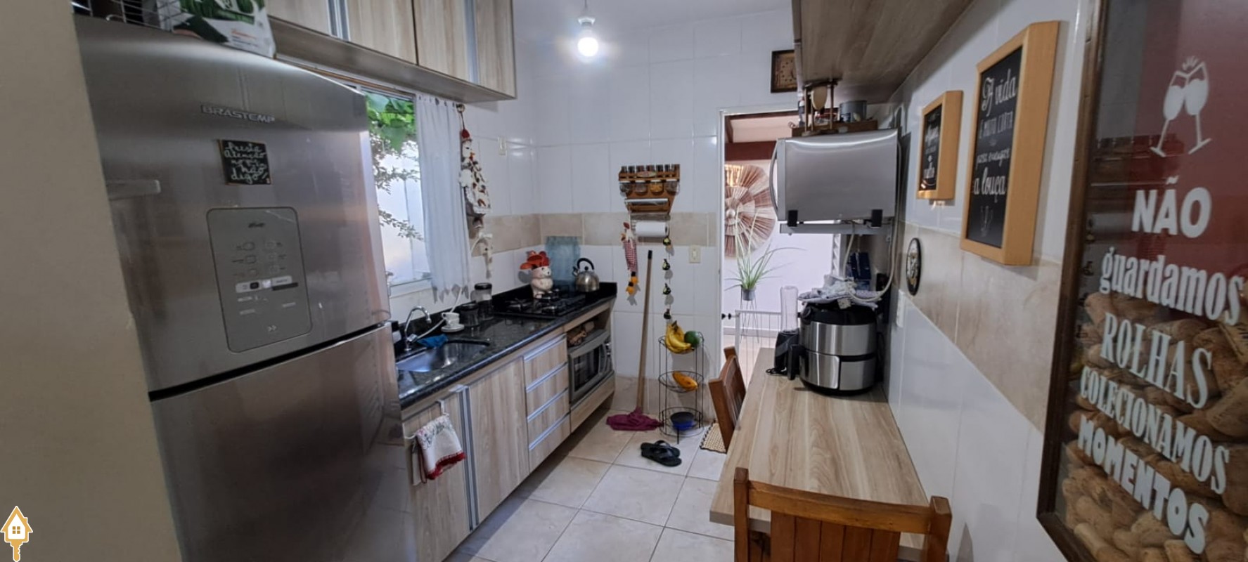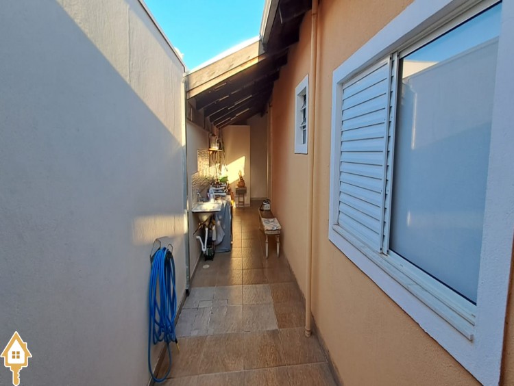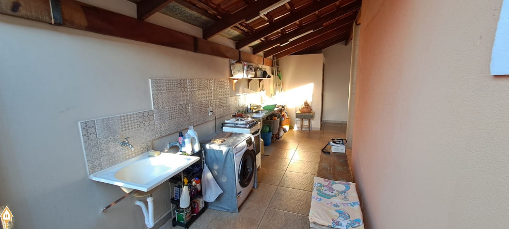 Possui 3 quartos sendo uma suíte com closet, demais quartos com armários planejados, wc social, sala 2 ambientes com jardim de inverno, cozinha com móveis planejados, quintal com varanda coberta e wc externo, garagem coberta para 2 automóveis.
