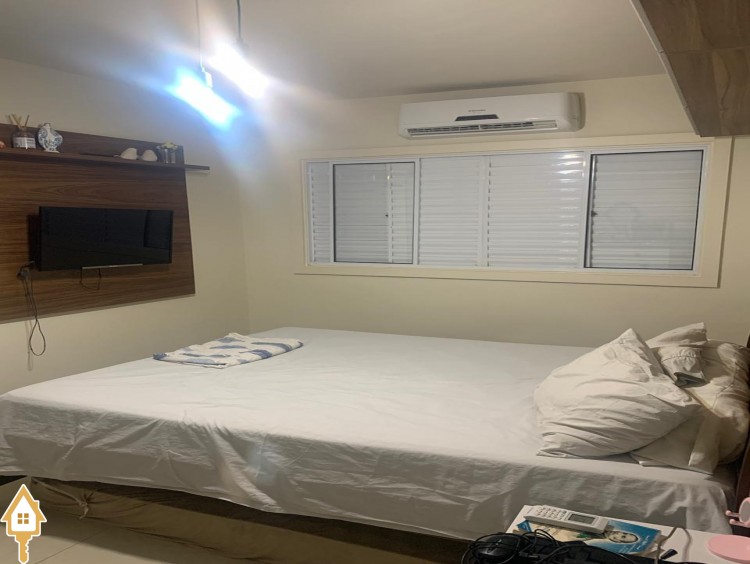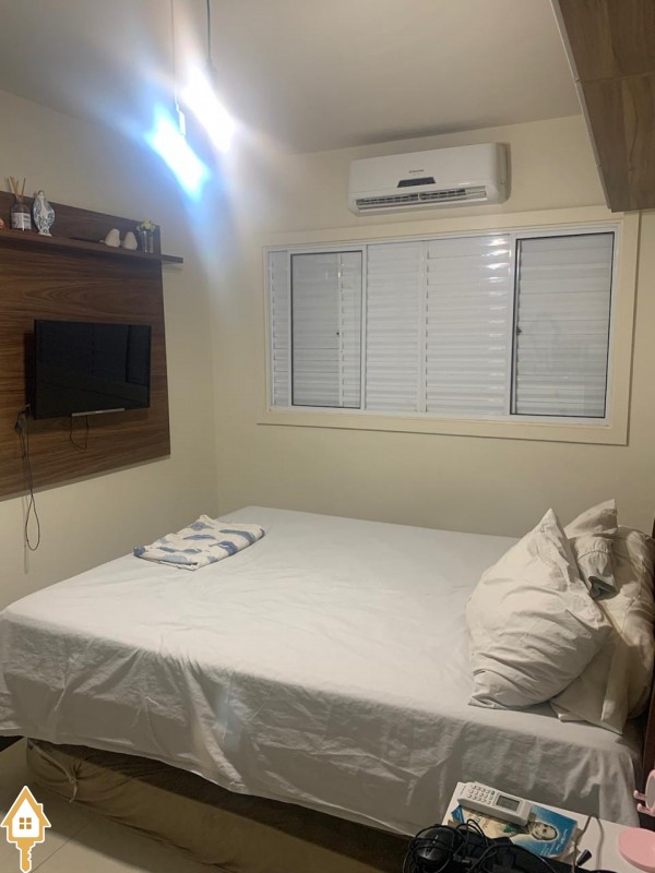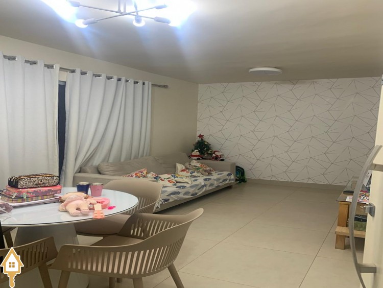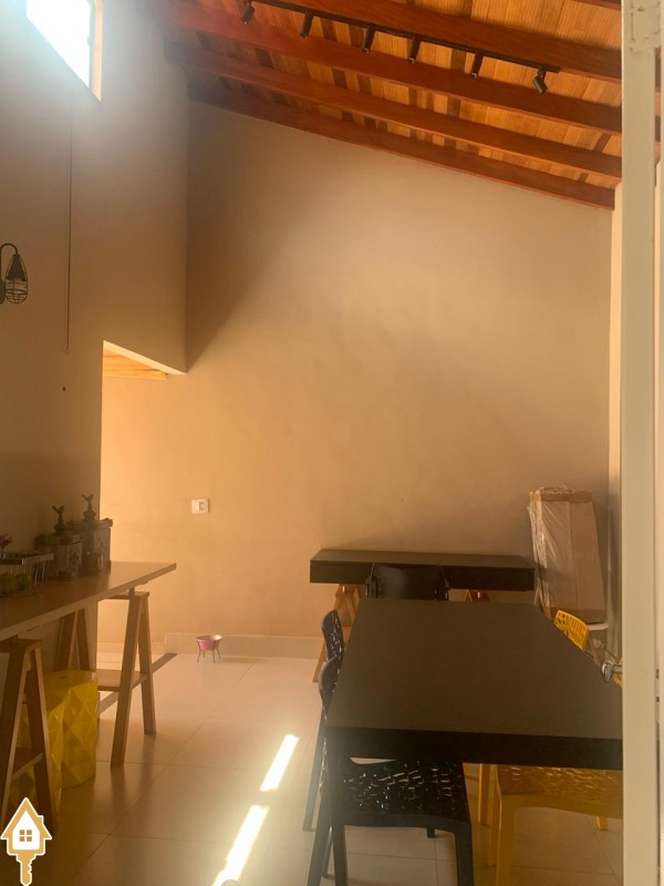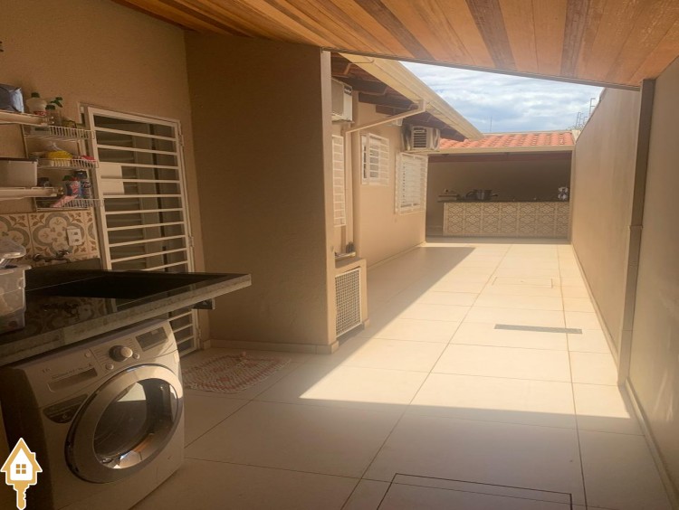 Possui 3 quartos sendo uma suíte com closet, wc social, sala 2 ambientes com jardim de inverno, cozinha com móveis planejados, quintal com varanda e wc externo, garagem coberta para 2 automóveis.