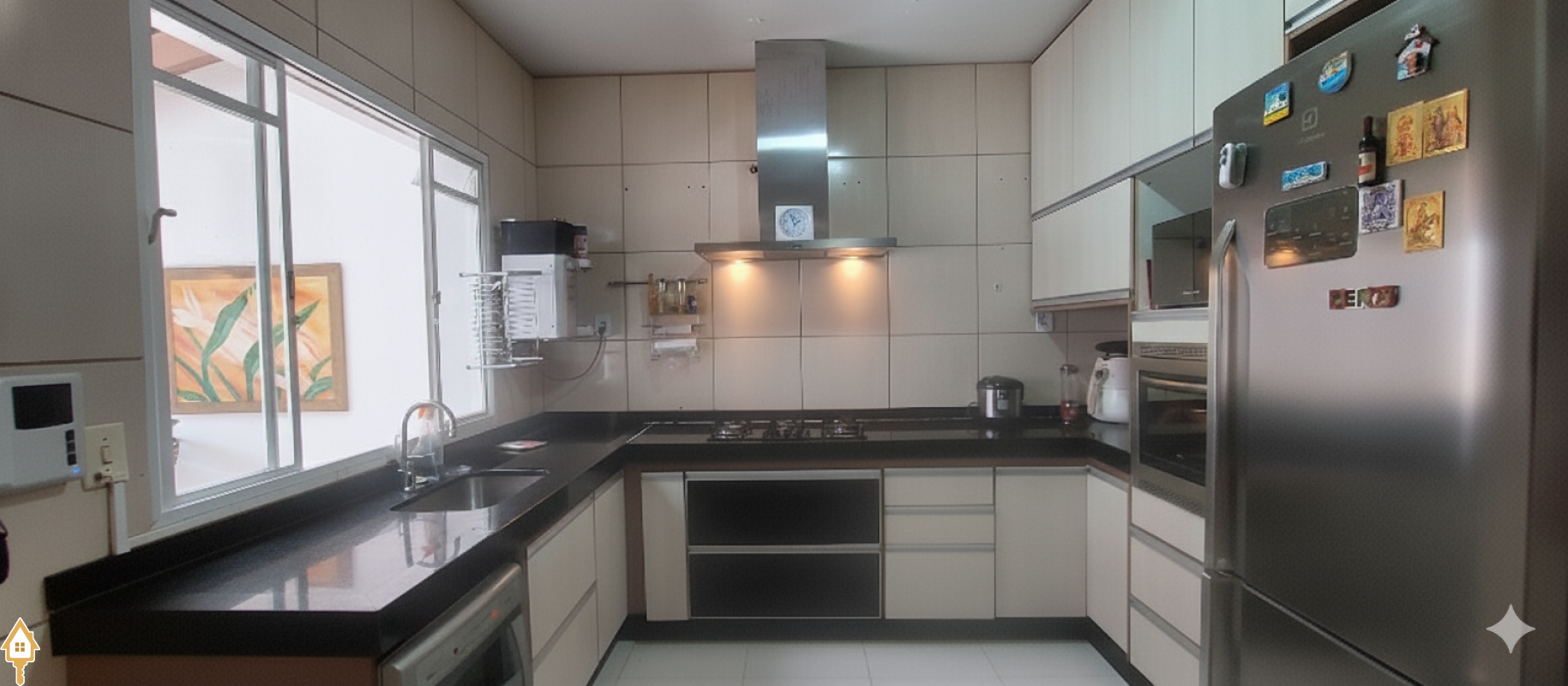 Com 462m² de terreno com 251m² de área construída, essa casa esbanja espaço no quintal e frente, possuindo sala de TV privativa (ou reversível a escritório), sala de jantar, de estar, cozinha com ótimos planejados, integrado a uma agradável varanda lateral.