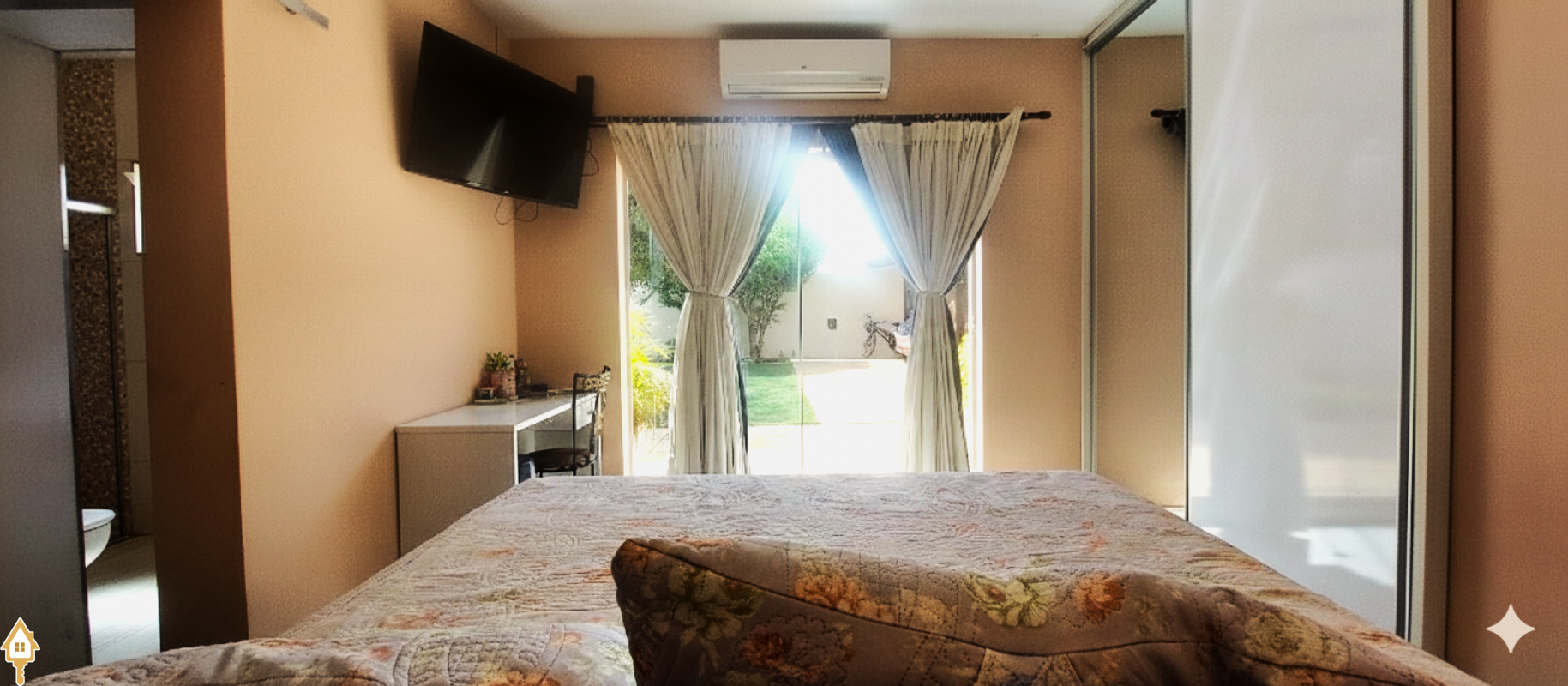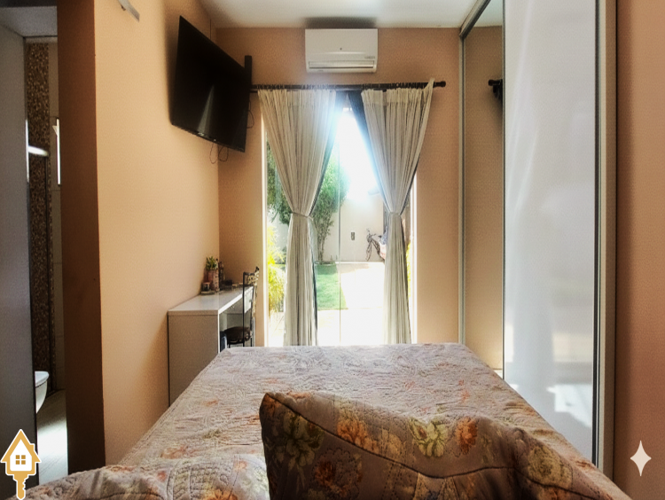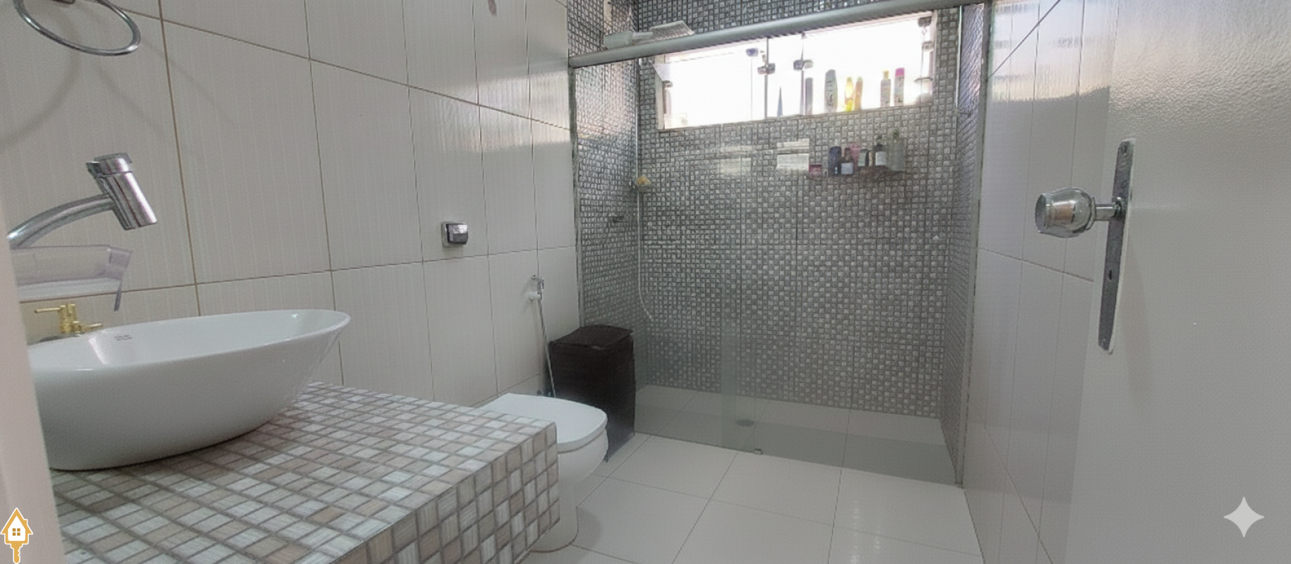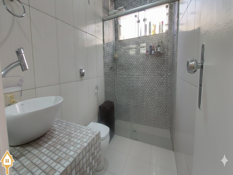 Possui 3 quartos espaçosos sendo uma suíte com closet e demais atendidos por wc social.