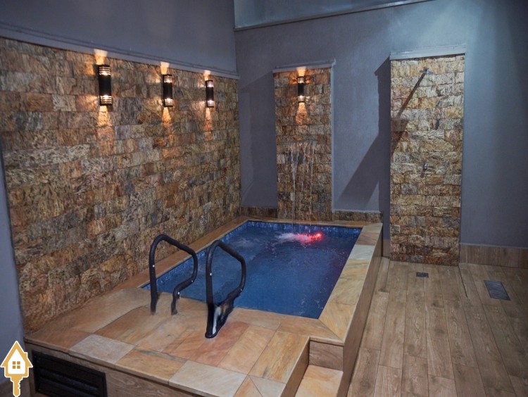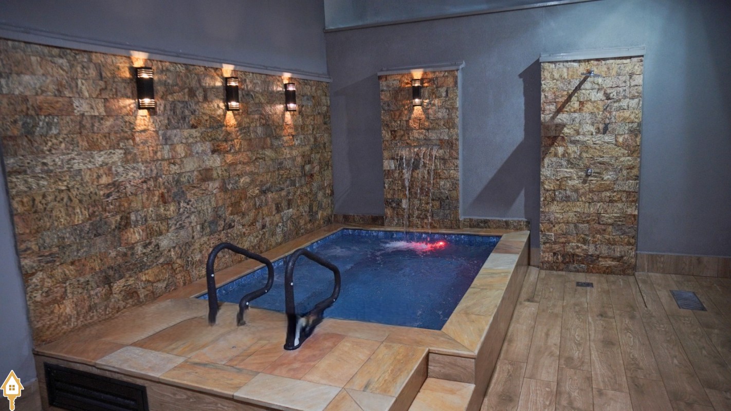 • Área de lazer com piscina aquecida, cascata, jatos de hidromassagem e ducha externa;