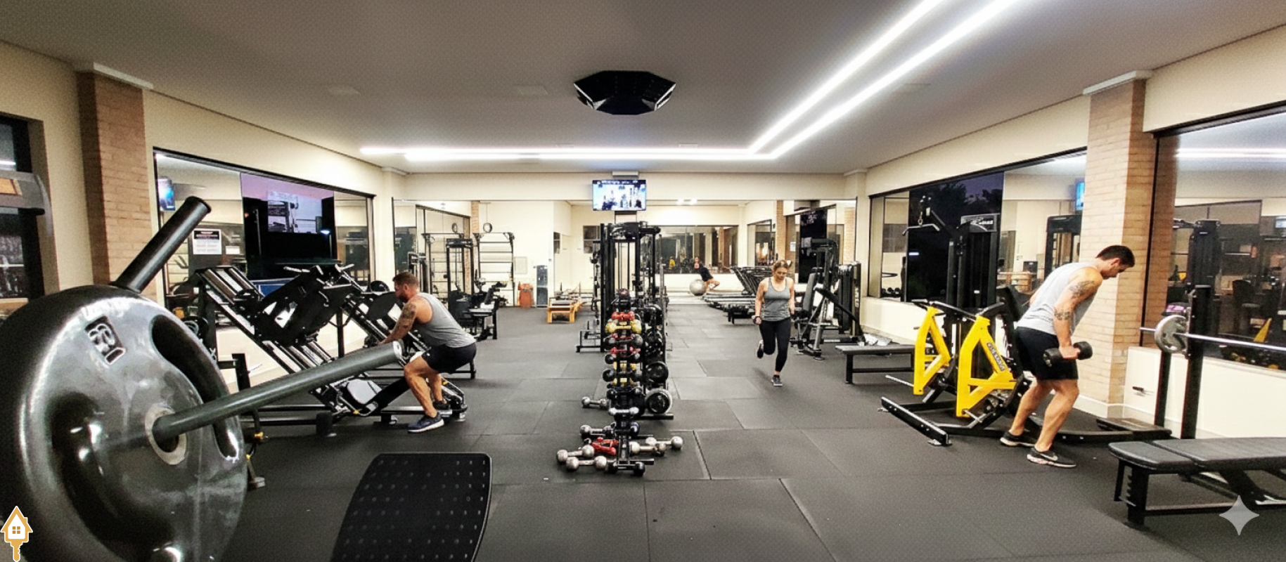 • Sala e área gourmet com pé direito duplo, com belíssimos painéis amadeirados e diferenciada iluminação em Led;