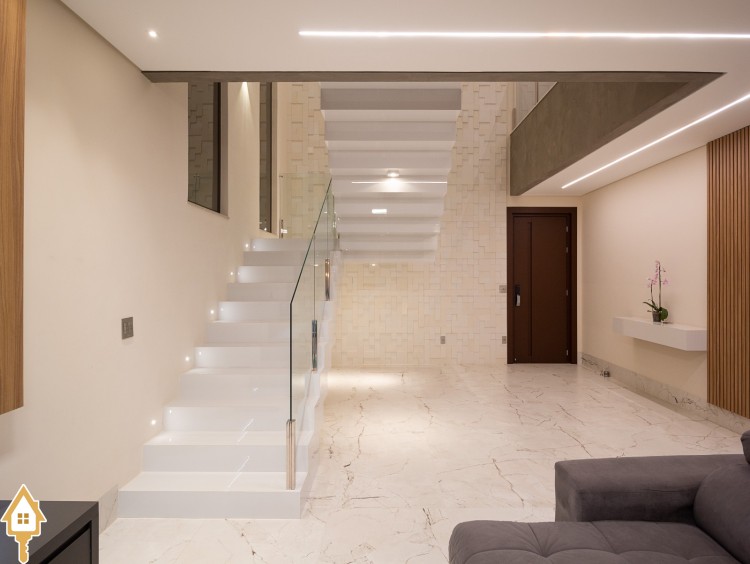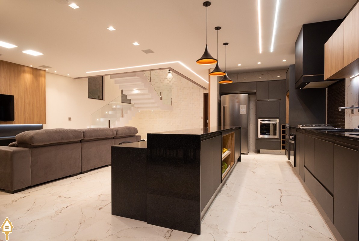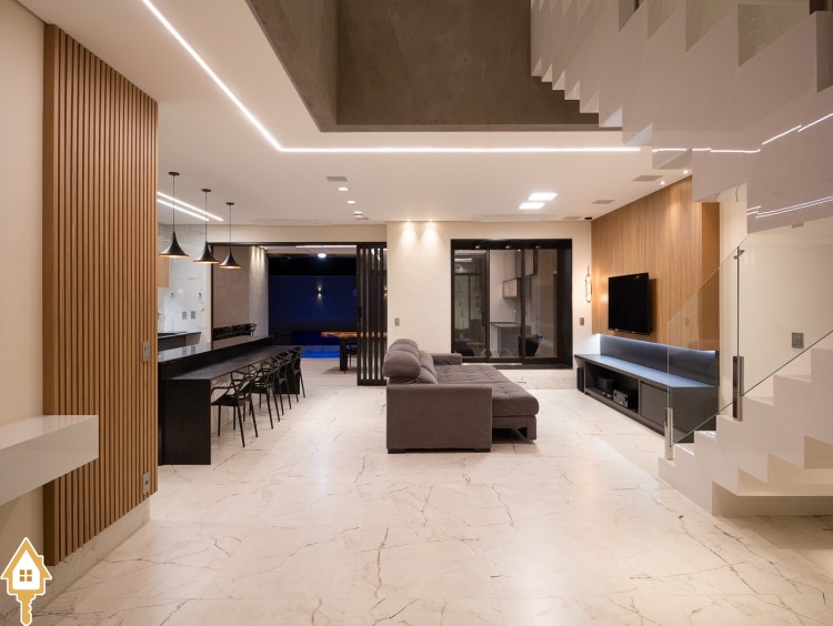 Living com pé-direito duplo e integração total dos ambientes