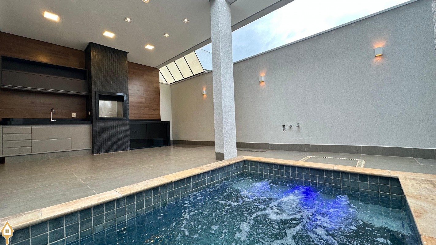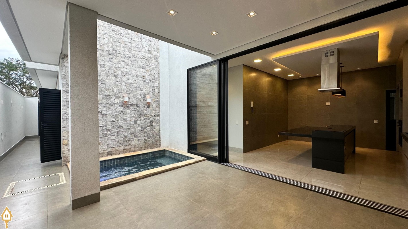 Casa de alto padrão em um dos condomínios mais desejados de Uberaba, com 179 m² de área construída em um lote de 300 m². O imóvel possui 3 suítes equipadas com ar-condicionado, cortinas automatizadas e jardim de inverno, sendo uma delas máster com closet. O projeto moderno e bem distribuído oferece cozinha gourmet integrada à área de lazer, equipada com forno, coifa e cooktop por indução. Conta ainda com lavabo, home TV com pé-direito alto e uma área externa com piscina, ideal para momentos de lazer e convivência. O condomínio dispõe de infraestrutura completa e segurança 24 horas, garantindo conforto, elegância e qualidade de vida para você e sua família.