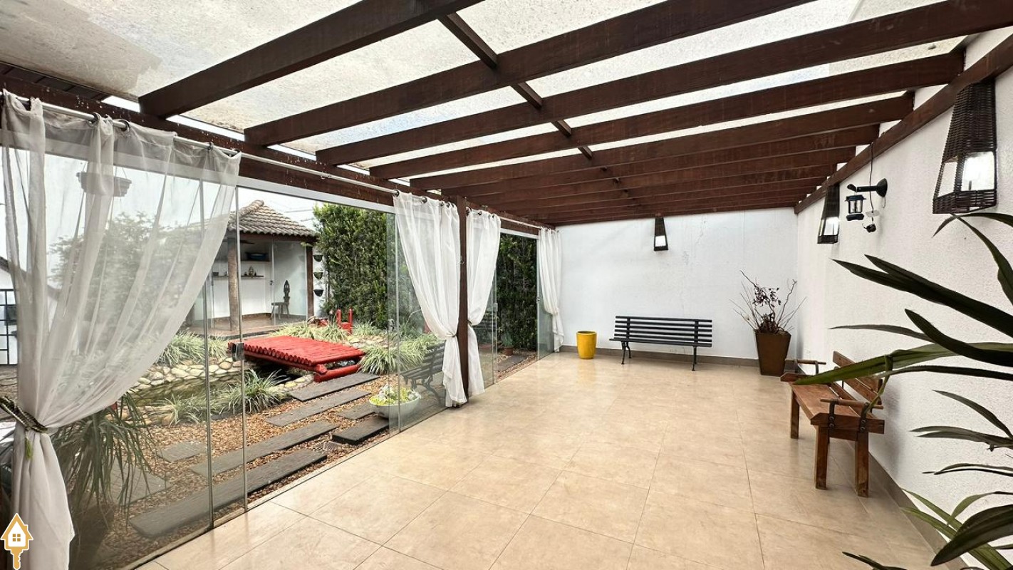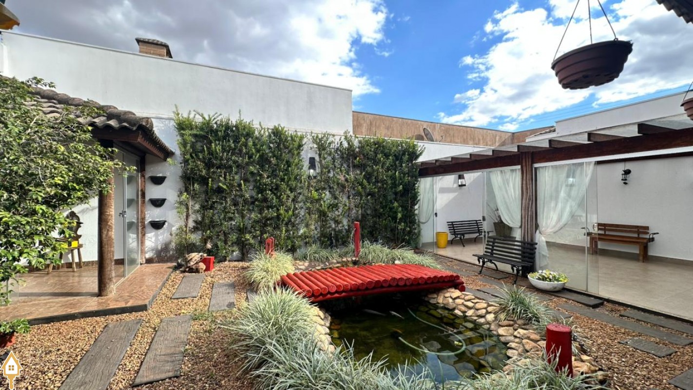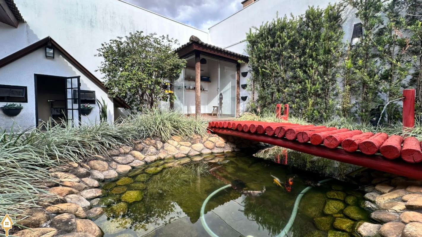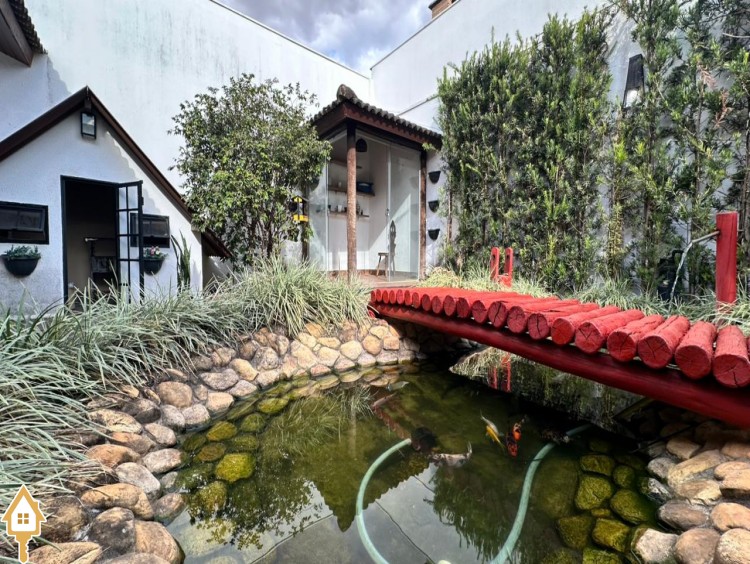 A área gourmet é um dos destaques da casa, perfeita para receber amigos e familiares em momentos de lazer. O espaço externo conta ainda com pergolado, trazendo charme ao ambiente, além de um jardim japonês, que valoriza o paisagismo e proporciona um espaço agradável para relaxamento. Para as crianças, o imóvel dispõe também de casa de brinquedos externa.