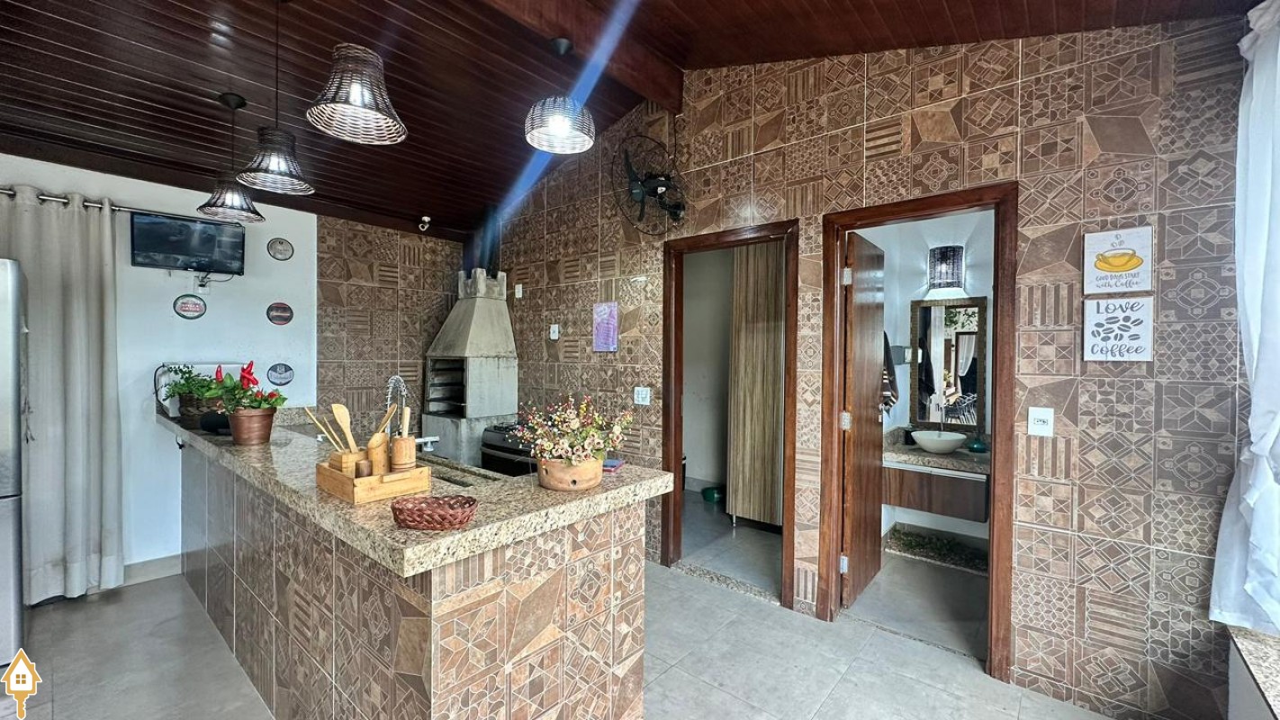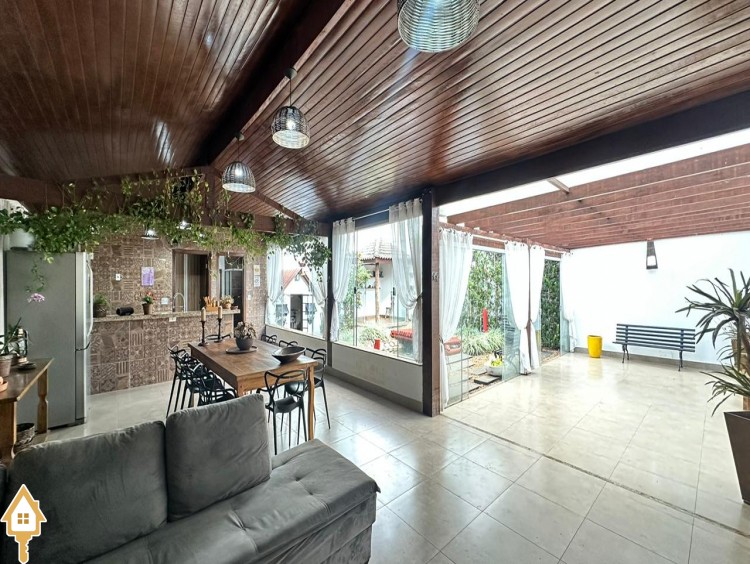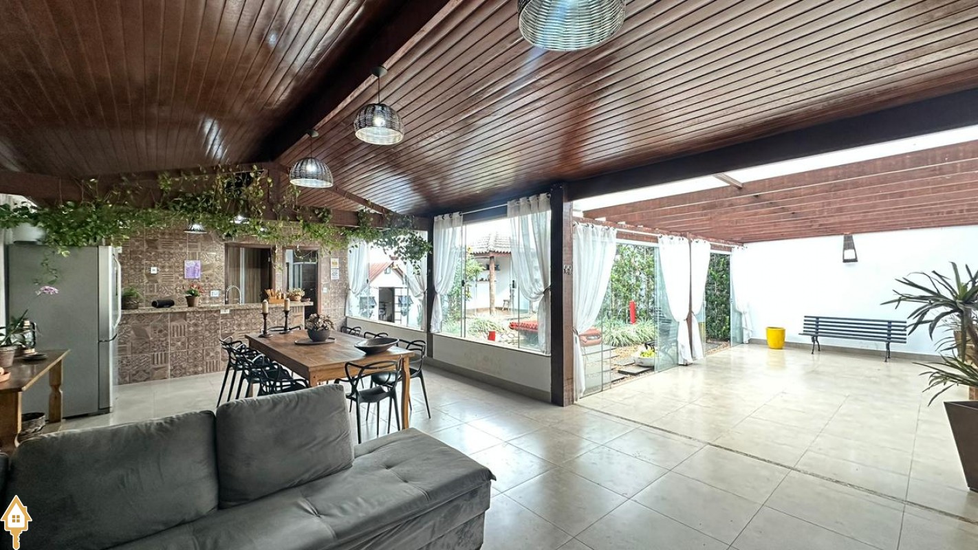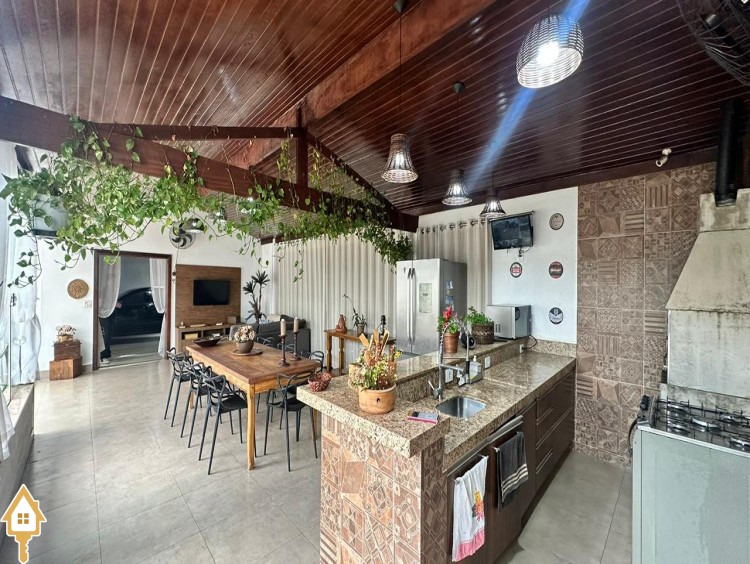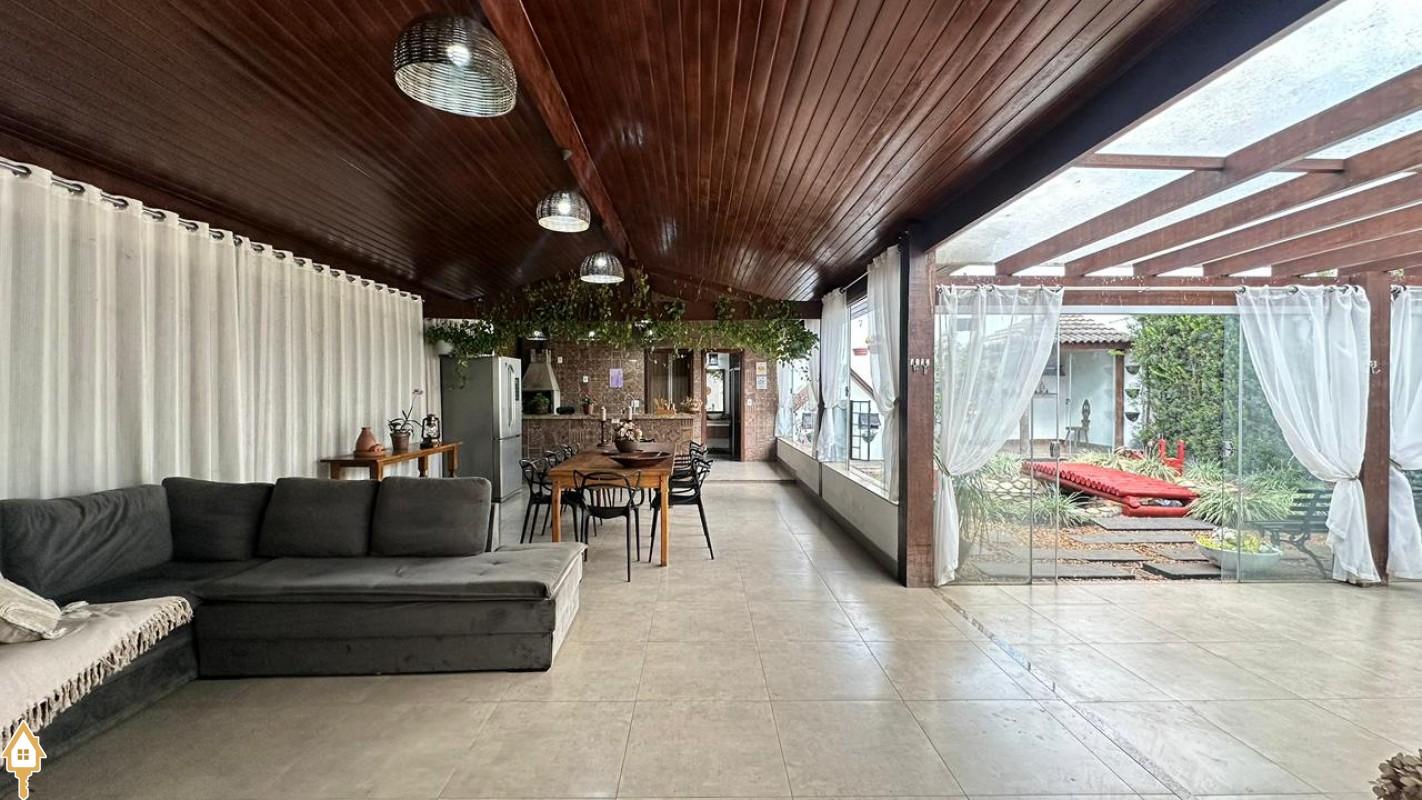 A área gourmet é um dos destaques da casa, perfeita para receber amigos e familiares em momentos de lazer. O espaço externo conta ainda com pergolado, trazendo charme ao ambiente, além de um jardim japonês, que valoriza o paisagismo e proporciona um espaço agradável para relaxamento. Para as crianças, o imóvel dispõe também de casa de brinquedos externa.
